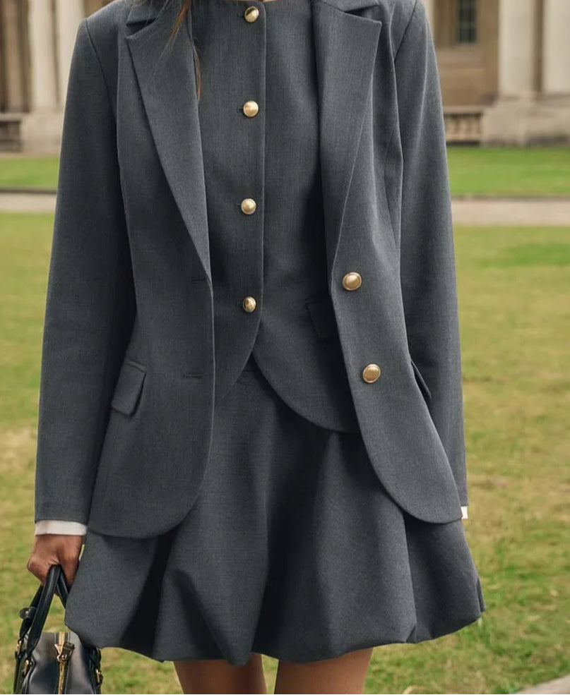 Ensemble deux pièces de bureau avec chemise à boutons grise et débardeur