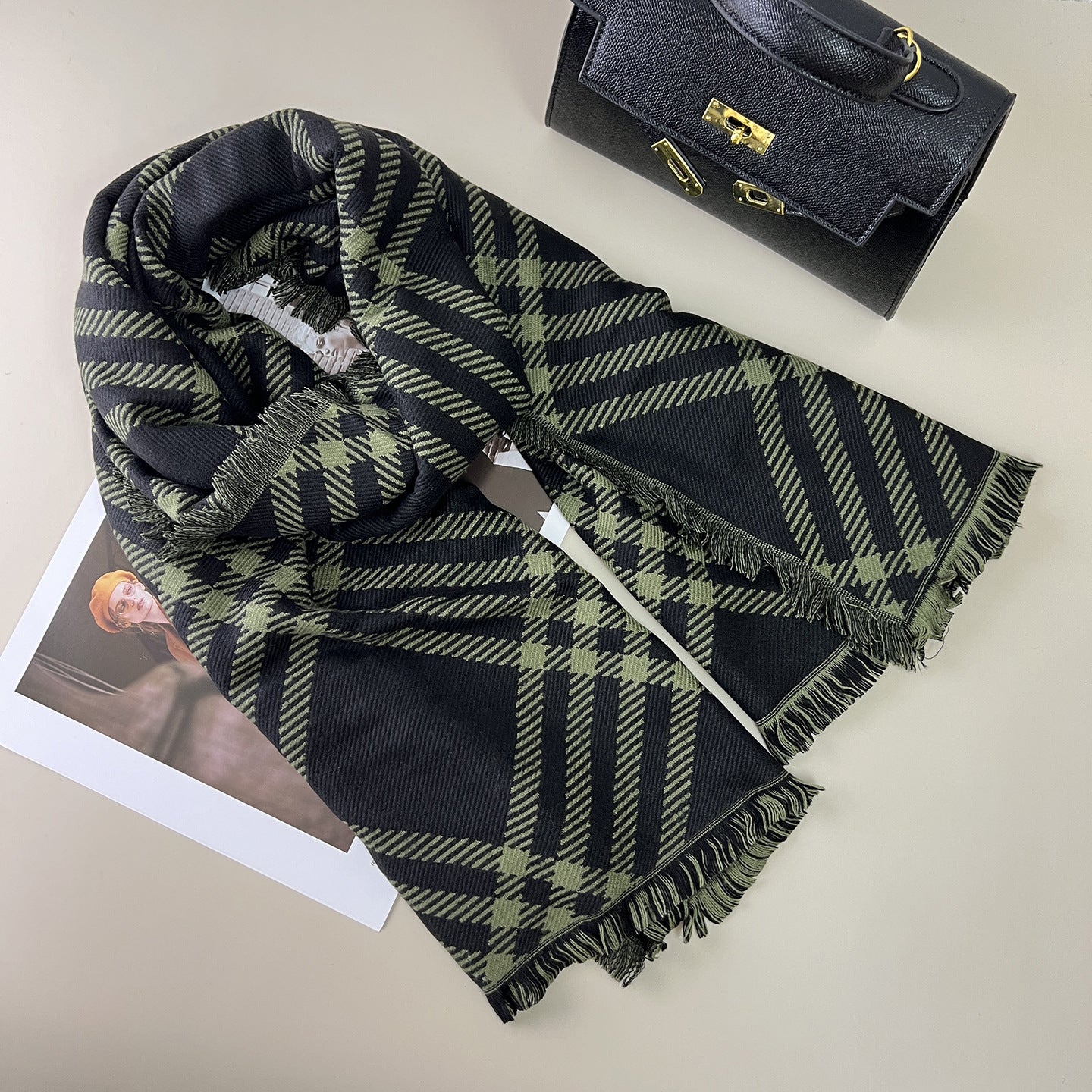 Classic Checkered Wool Blend Scarf