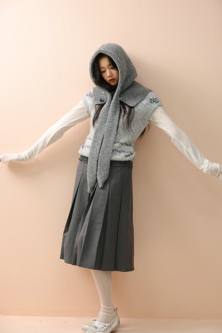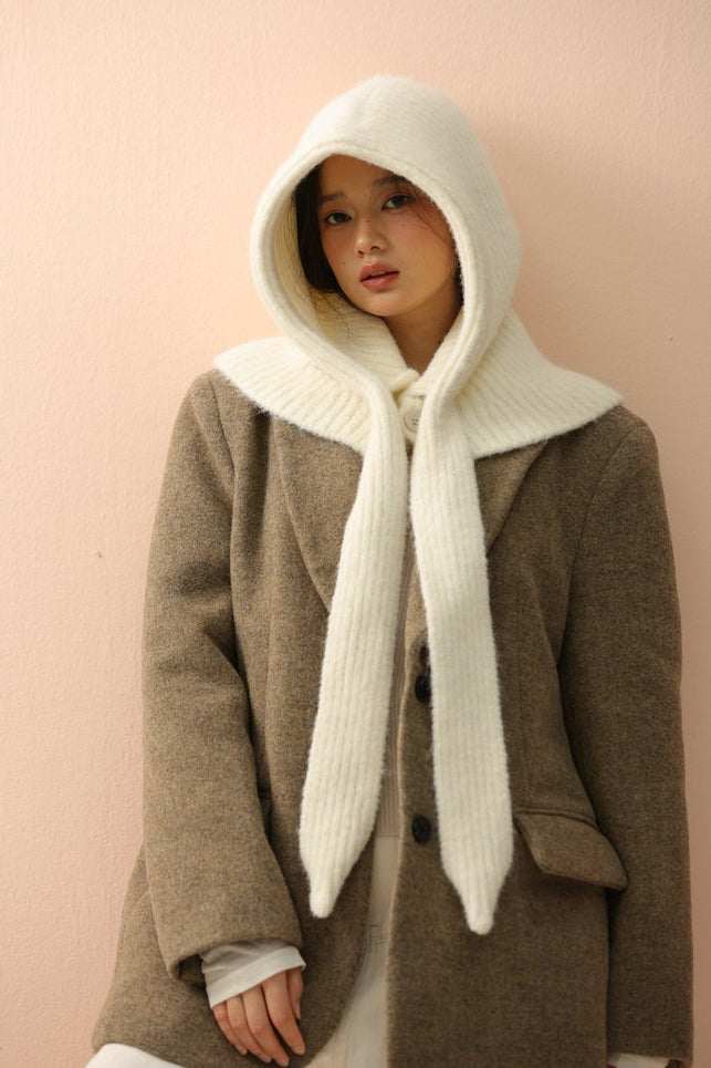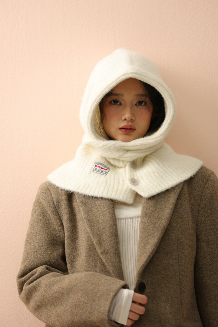 Solid Knitted Hooded Versatile Scarf