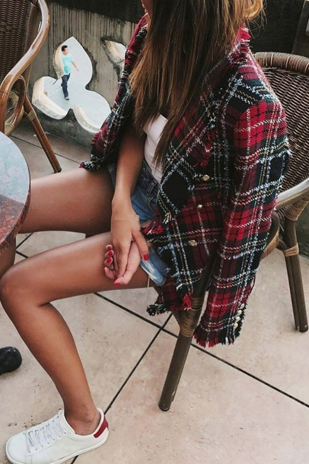 Plaid Tweed Multi-Button Chic Blazer Outerwear