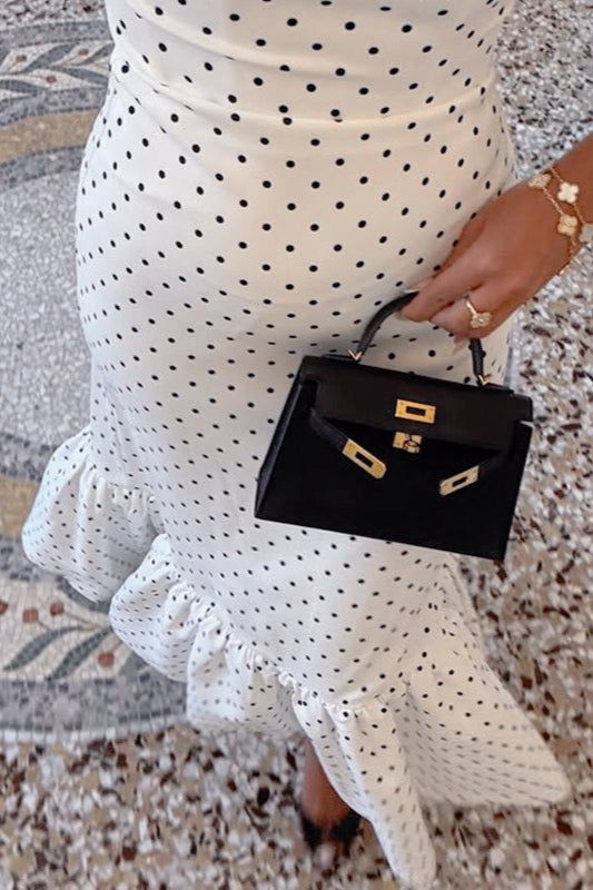 Robe longue sirène sans bretelles à pois