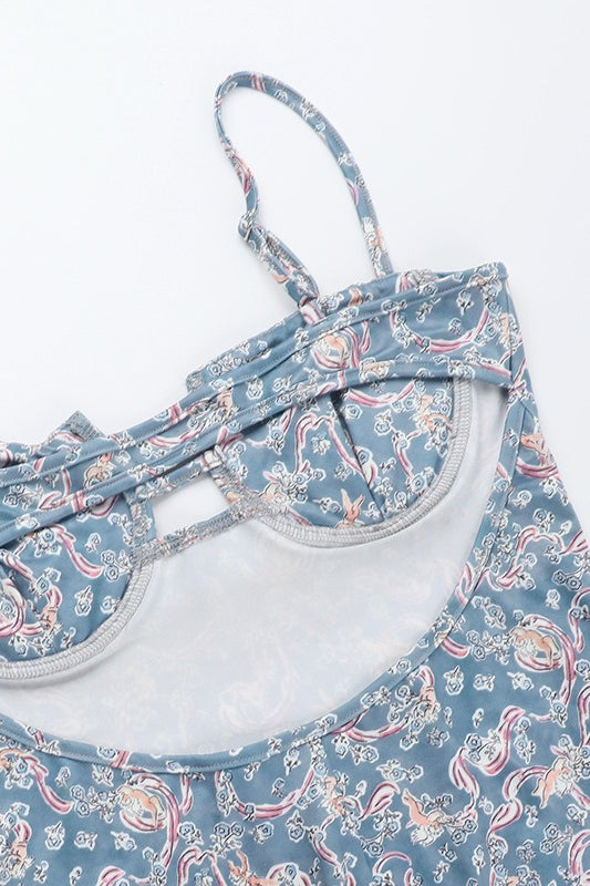 Sexy Spaghetti Strap Paisley Floral Bodycon Maxi Dress
