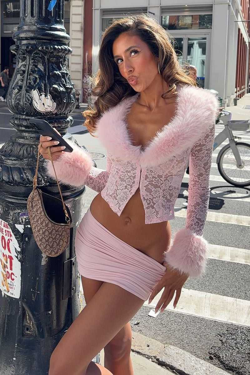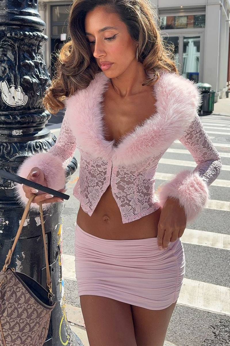Lace Fleece Long Sleeve Two Piece Set