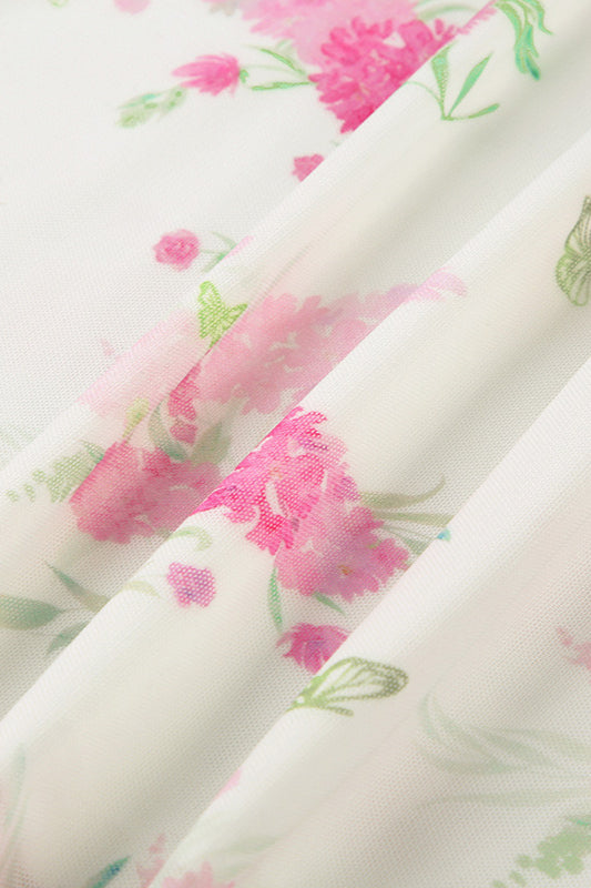Contrast Backless U Neck High Waist Cami Floral Dress