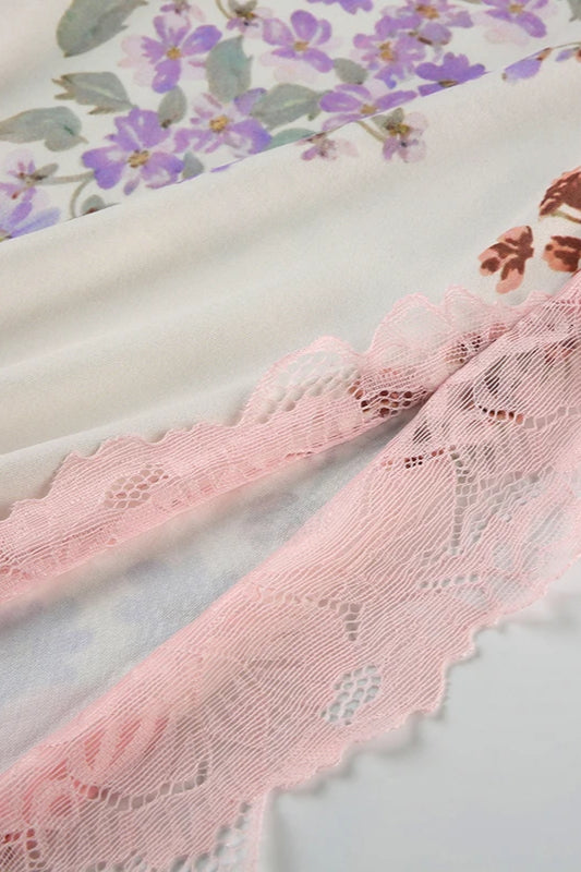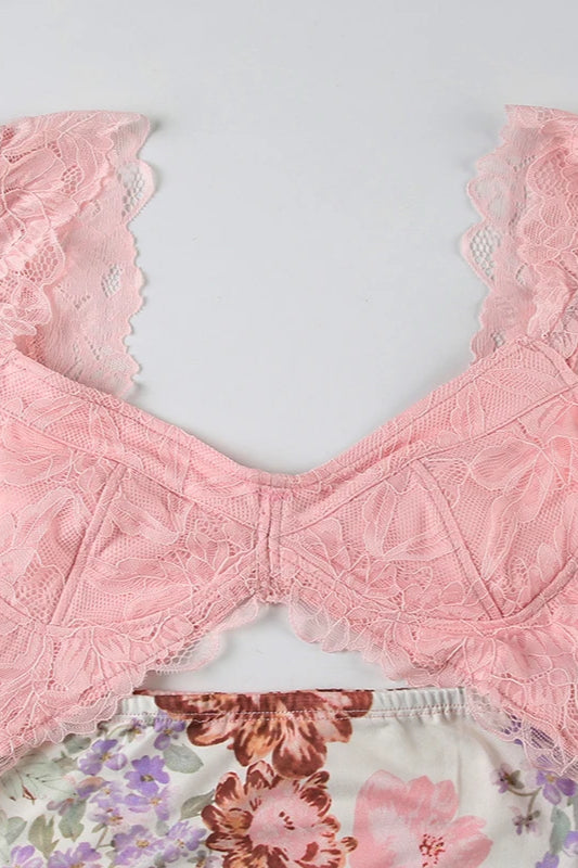 Robe fleurie dos nu avec bordure en dentelle et imprimé fleuri