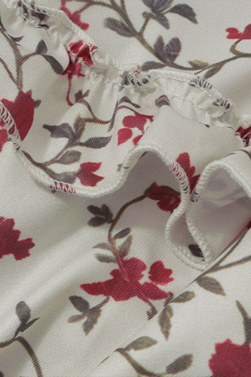 V Neck Halter Floral Ruffled Slim Floral Dress