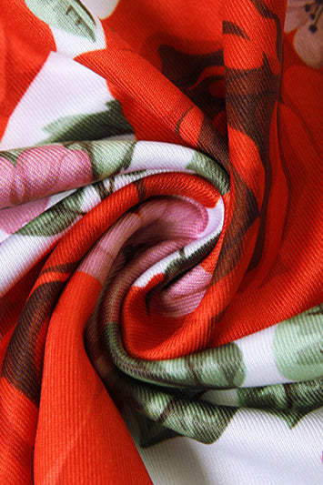 Ensemble deux pièces robe longue fleurie taille haute à col en V