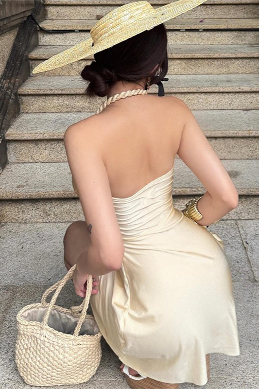 Solid Sexy Halter Bandeau Waist Cinched Mini Dress