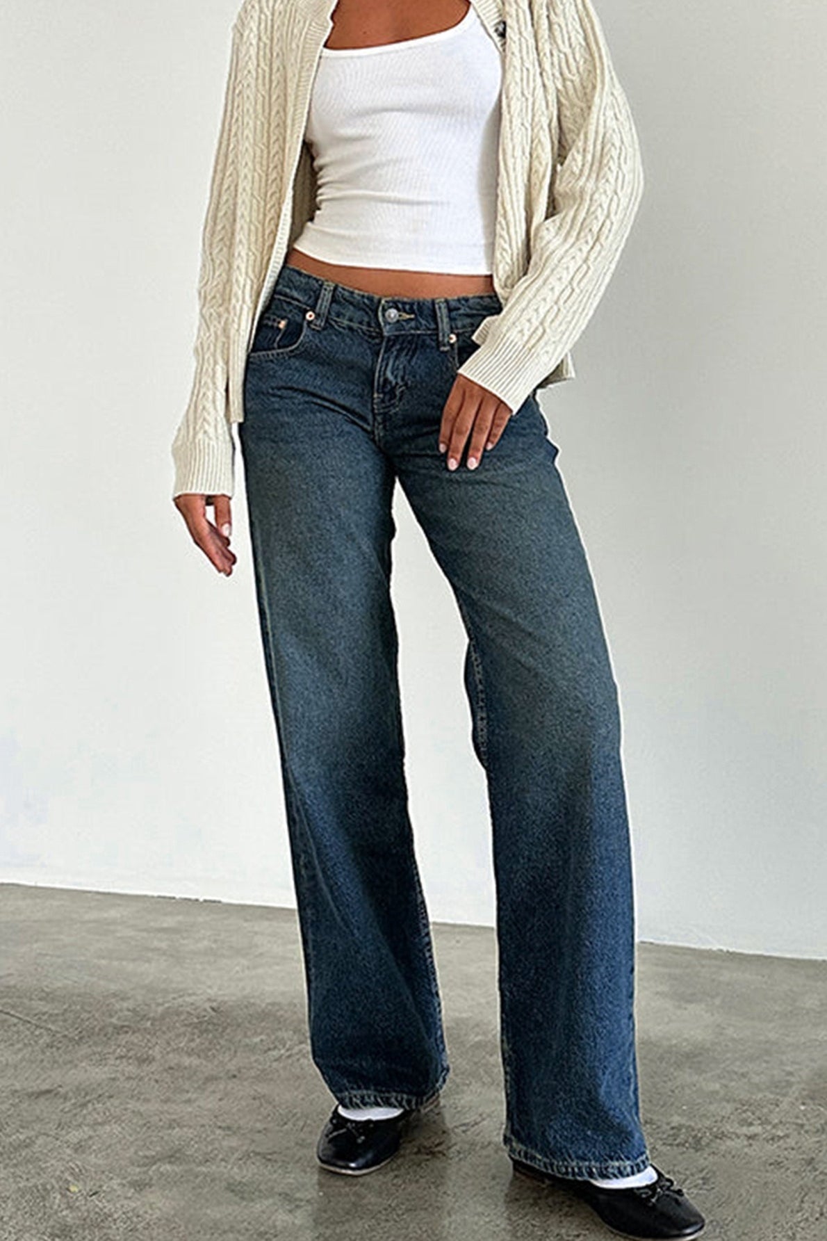 Vintage Washed Stretchy Straight Leg Jeans