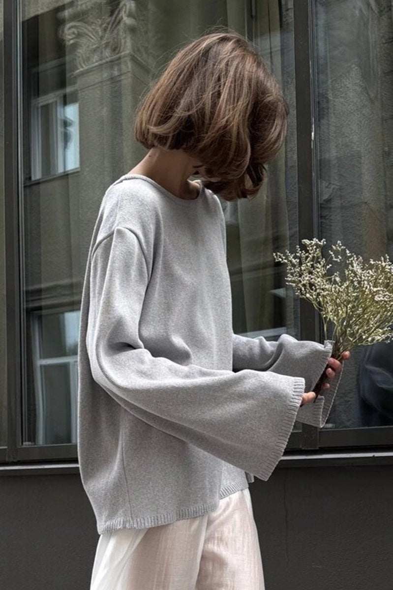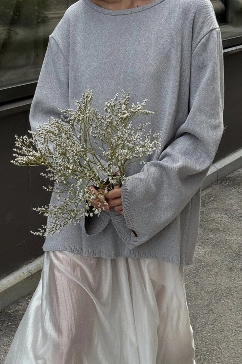 Cotton Pullover Open-Back Loose Sexy Knit Top