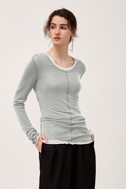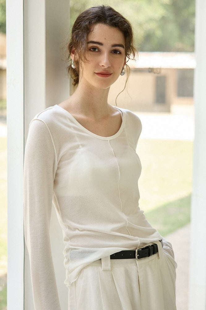 Tencel Wool Blend Round Neck Knit Top