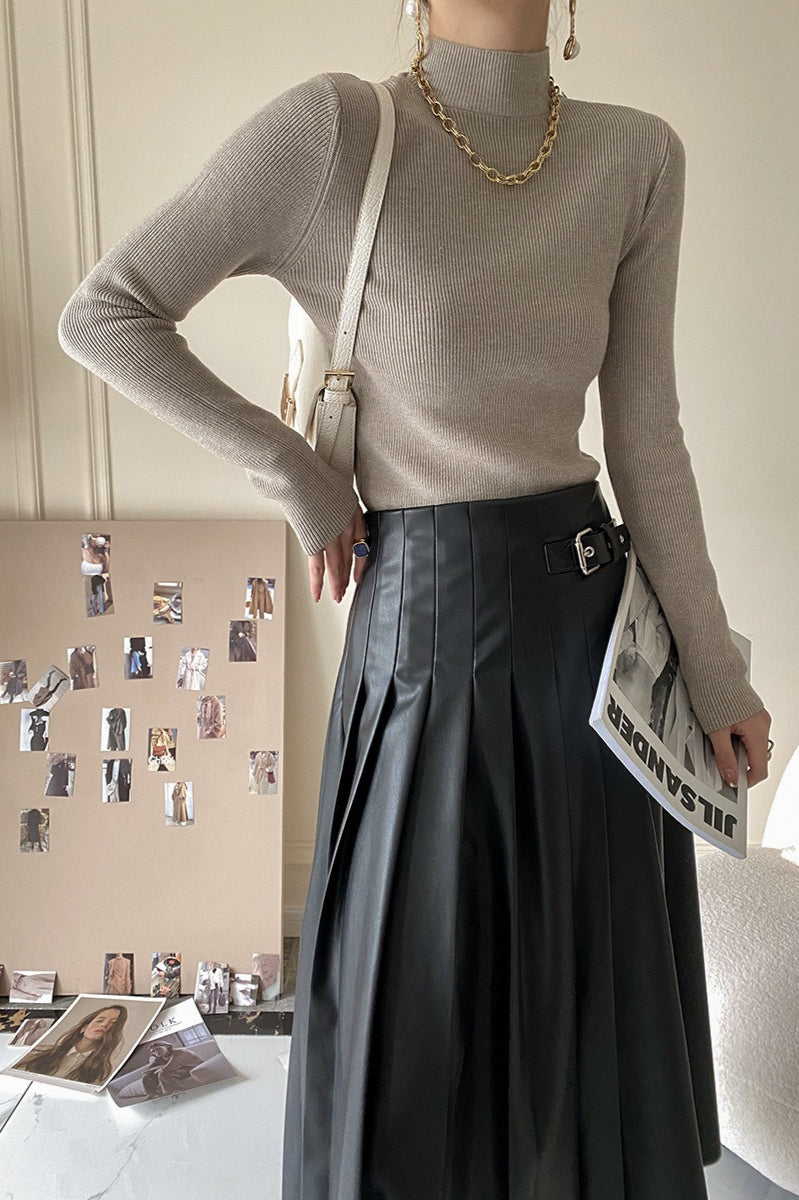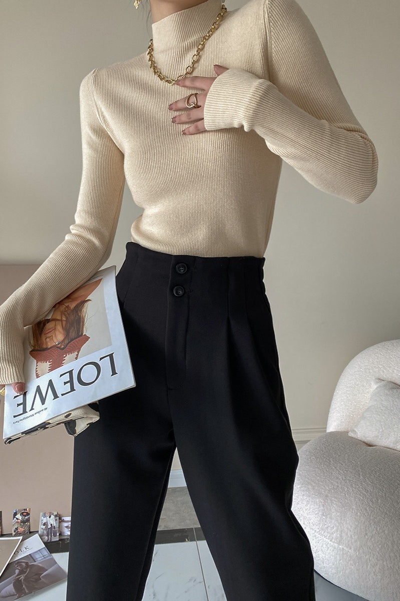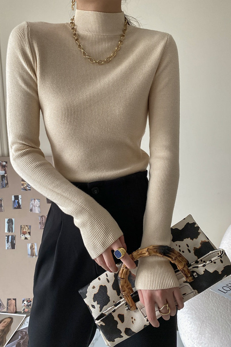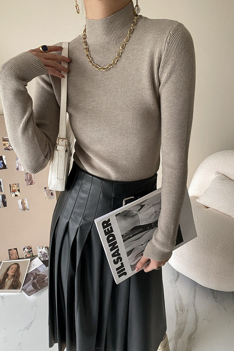 Slim Mock Neck Long-Sleeve Knit Top