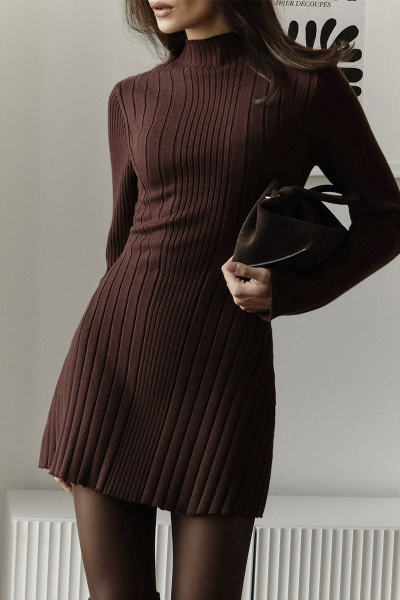 Elegant Playful Knit Mock Neck Long Sleeve A Line Mini Dress