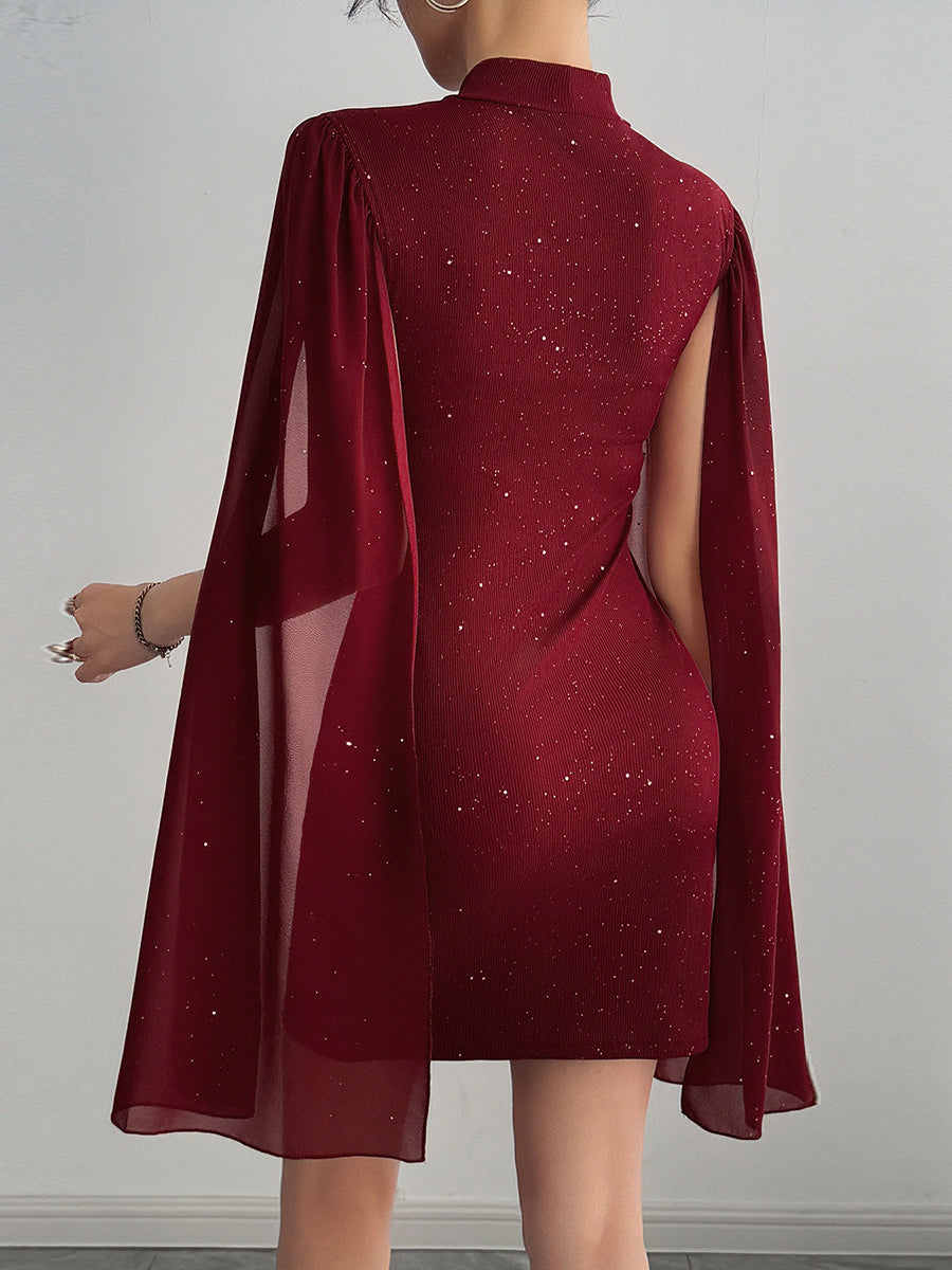 Rhinestone Spliced Round Neck Slim Fit Mini Dress