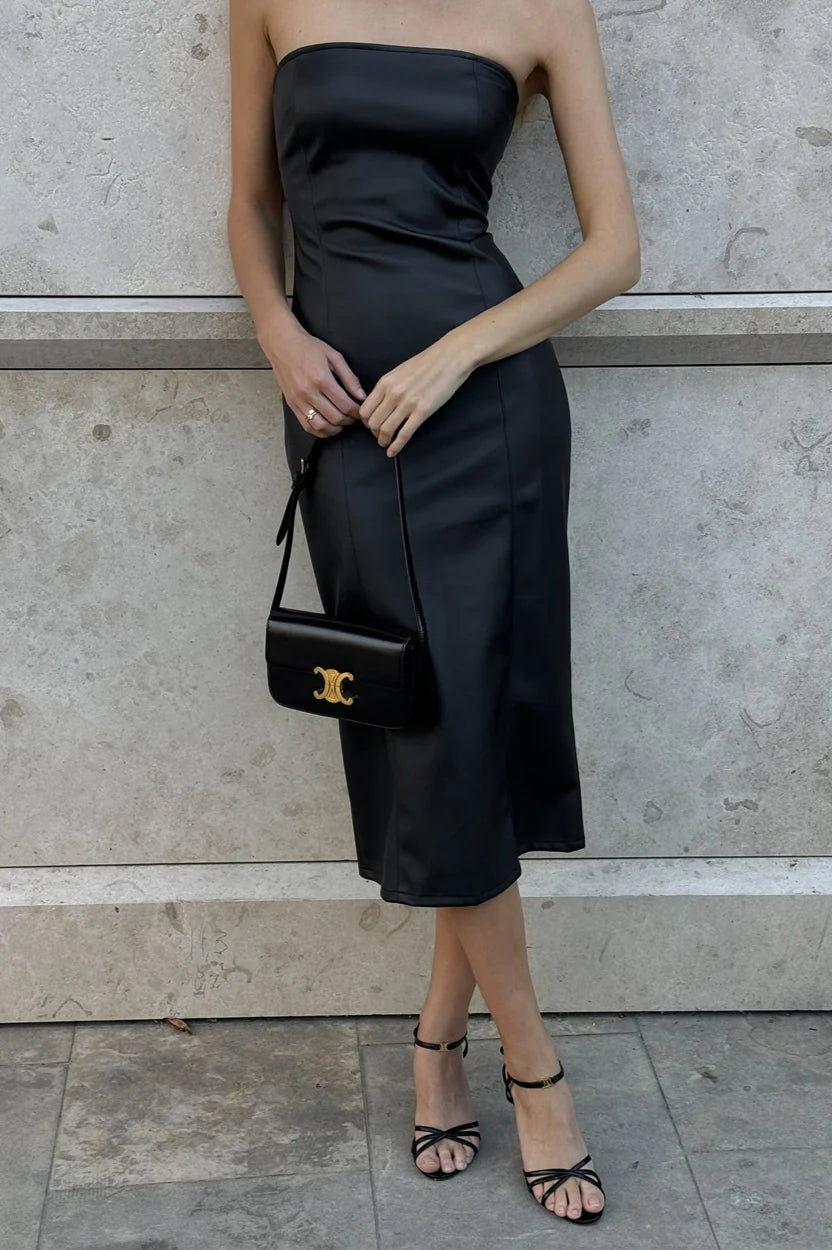 Robe moulante sans bretelles en similicuir avec robe de soirée fendue