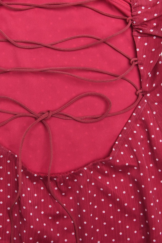 • Details: Polka Dot Print, Backless, Tie