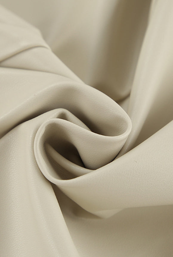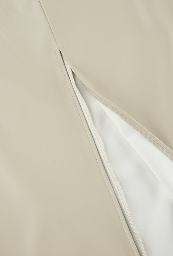 Jupe mi-longue fendue taille haute en cuir synthétique kaki