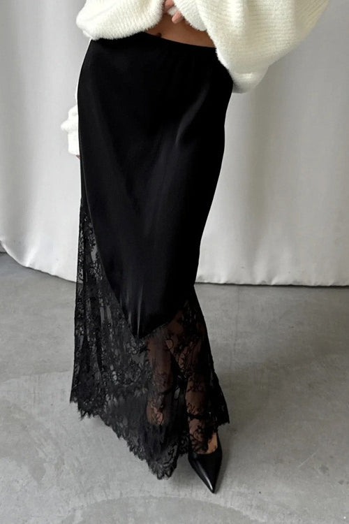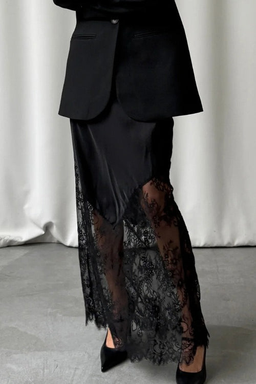 Lace Patchwork Sheer Bodycon Skirt