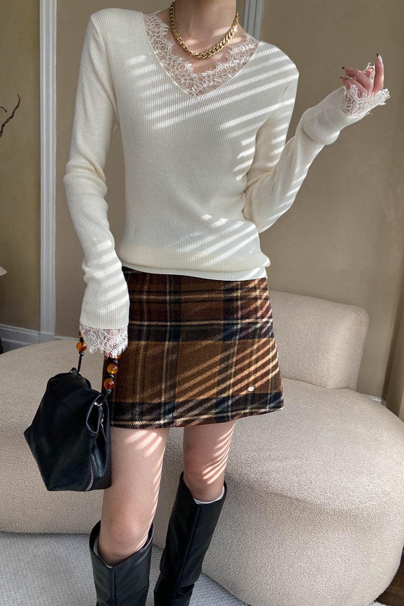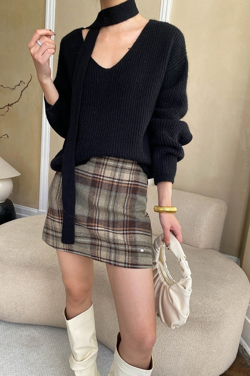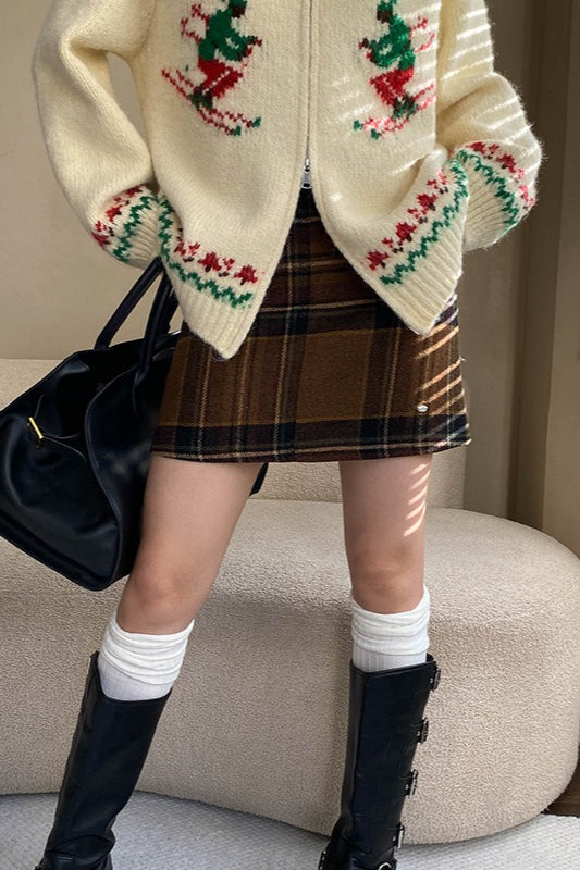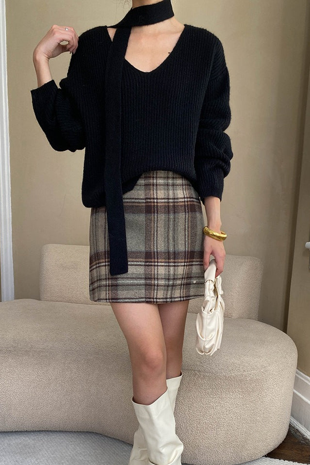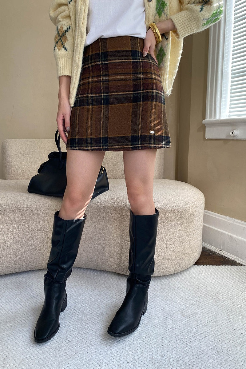 Plaid Color Block High Waist Skirt
