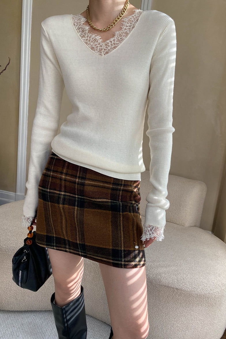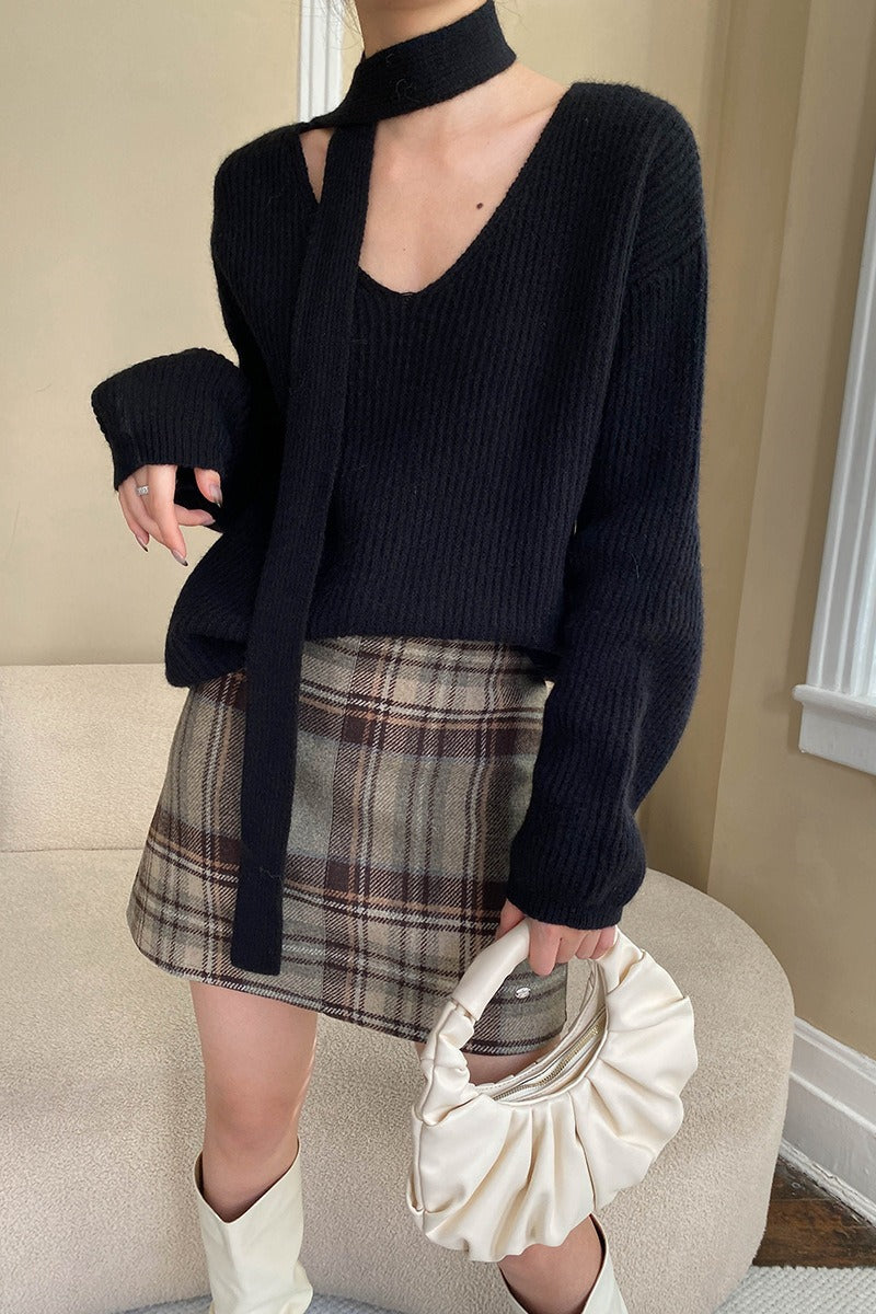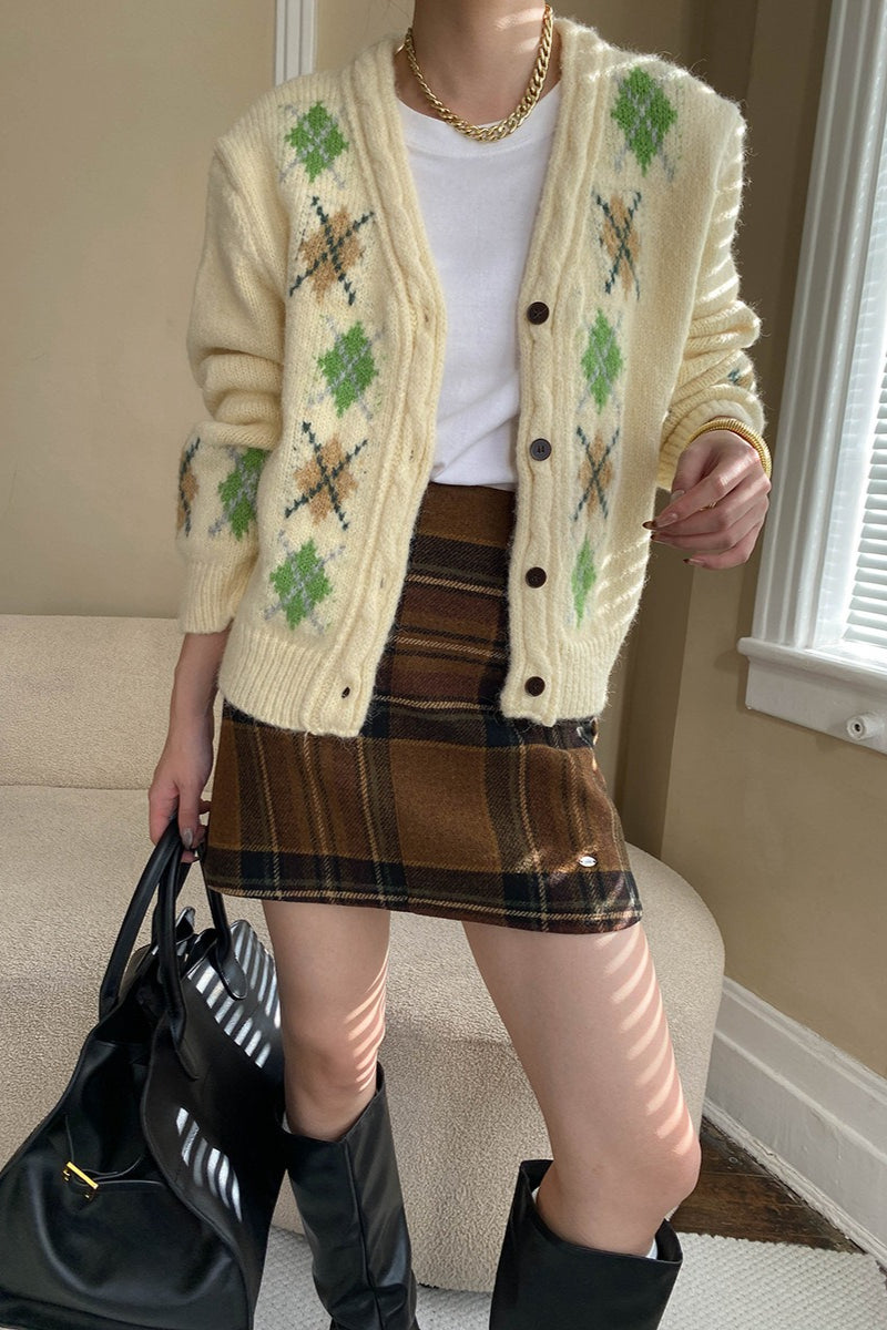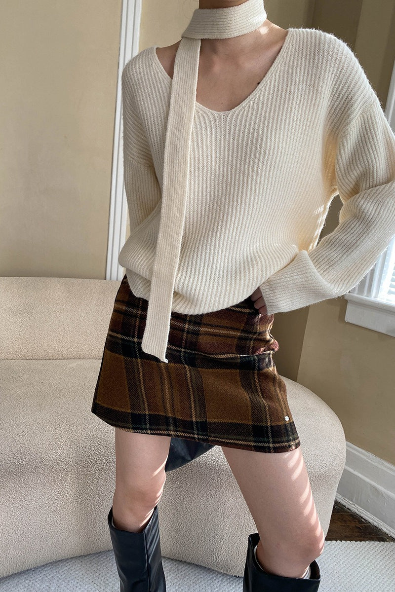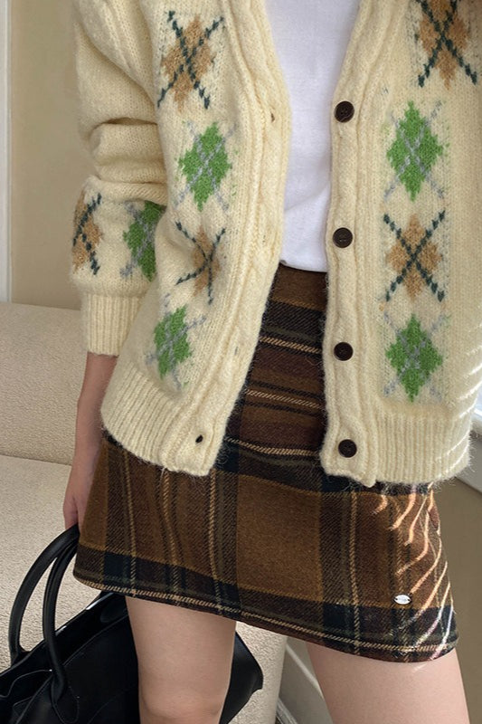 Plaid Color Block High Waist Skirt