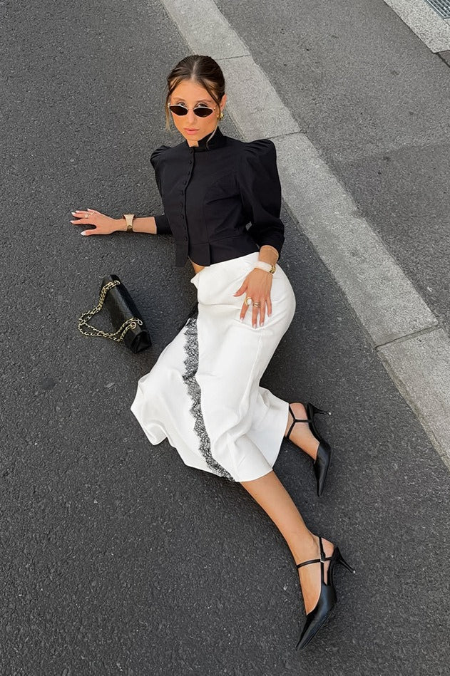 Vintage Satin Lace High-Waist A-Line Midi Skirt