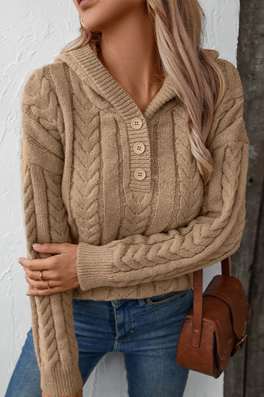 Vintage Solid Color Button-Front Hooded Thick Warm Sweater