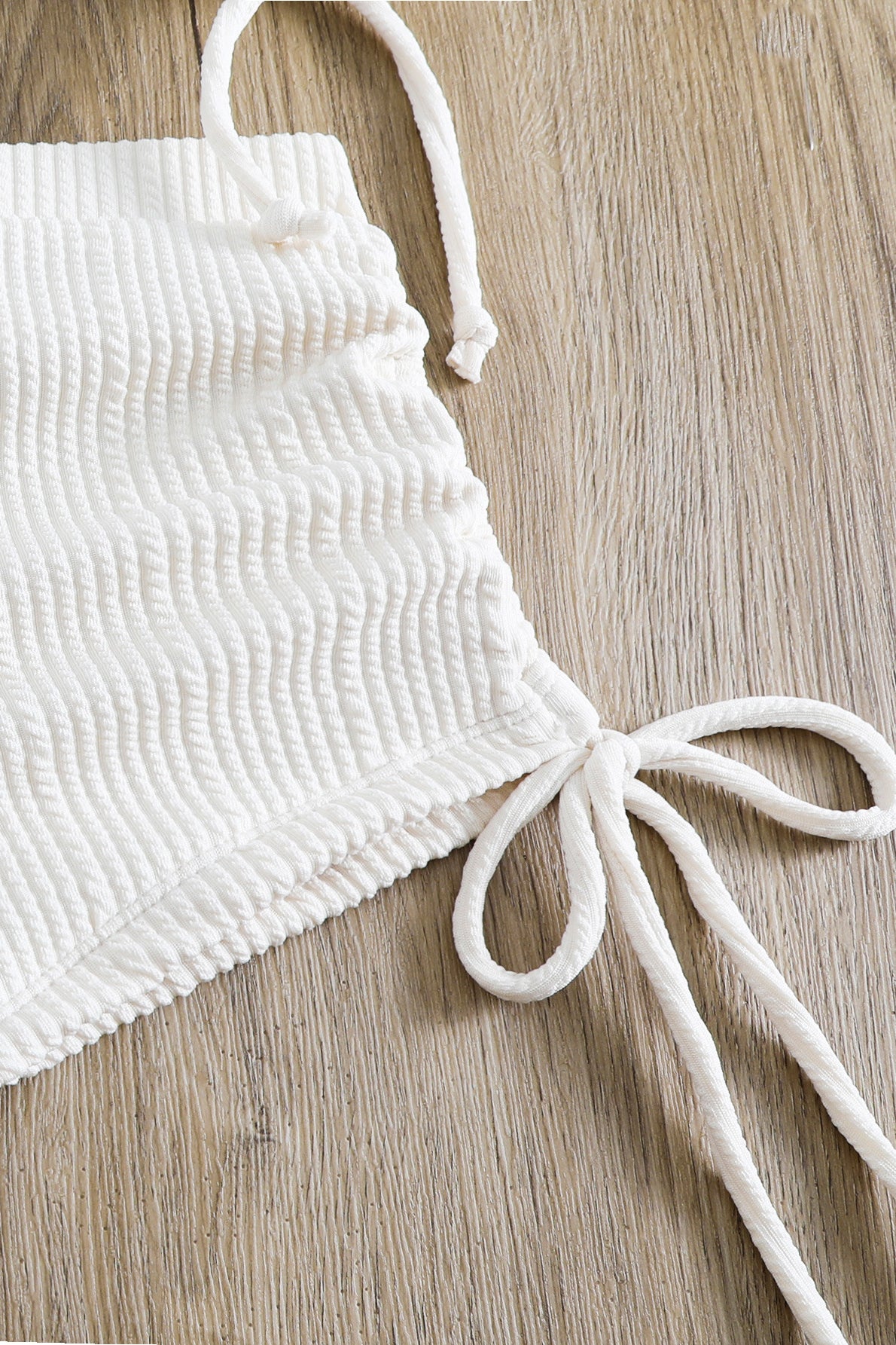 Ensemble de bain deux pièces bikini taille haute à cordon de serrage de couleur unie