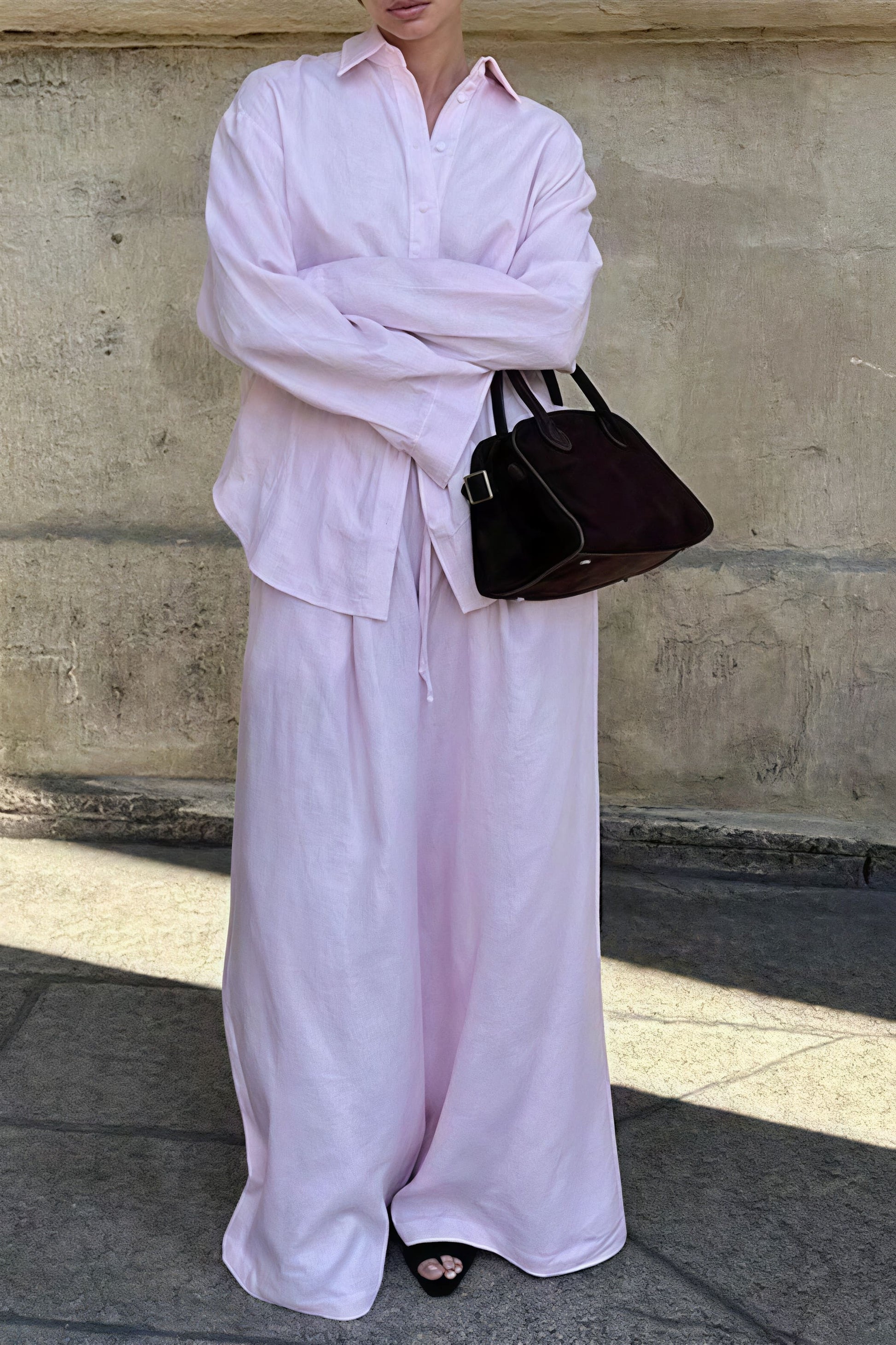 Cotton Loose Long Sleeve Shirt Pants Two Piece Set