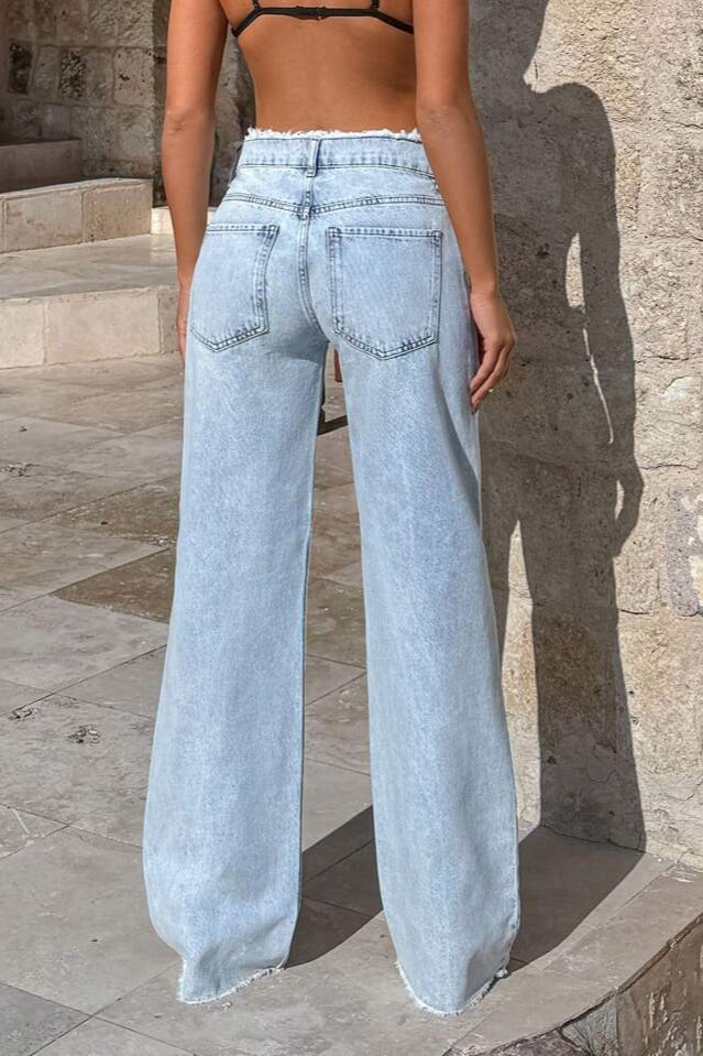 Frayed High Waist Loose Wide Leg Jeans