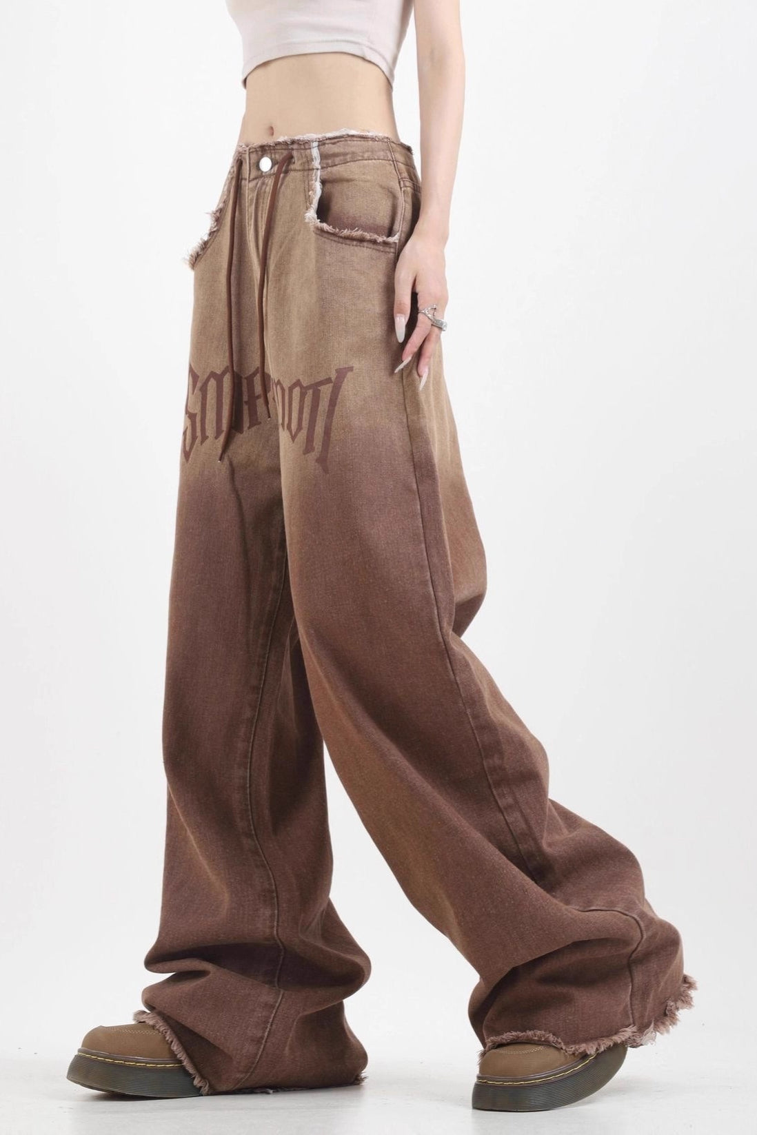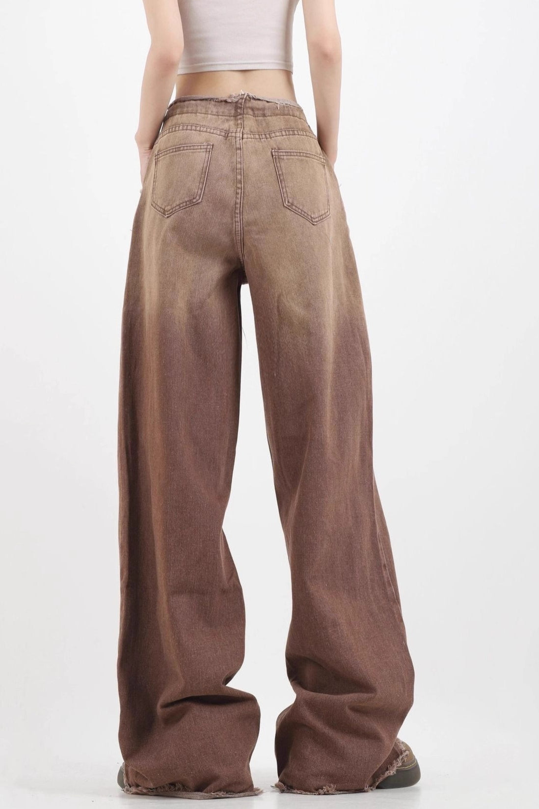 Gradient High Waist Vintage Wide Leg Frayed Jeans
