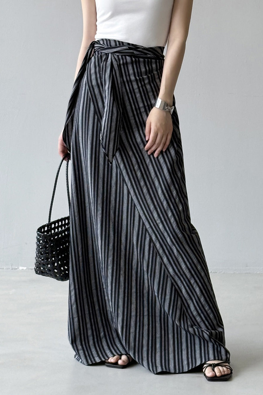High Waist Striped Tie Waist A Line Maxi Skirt