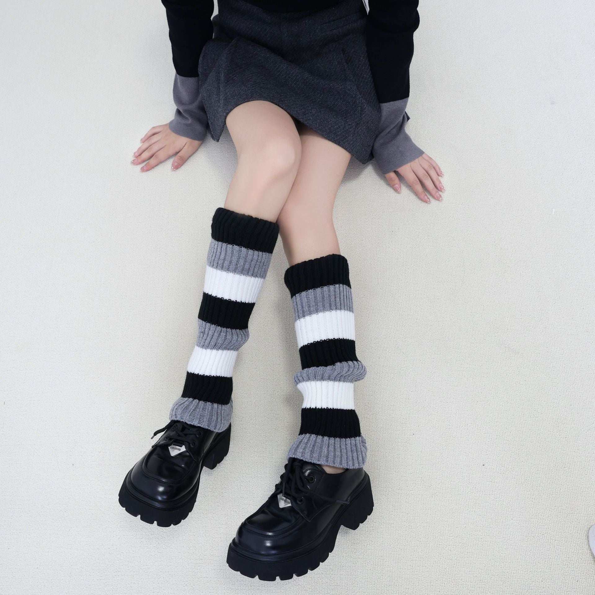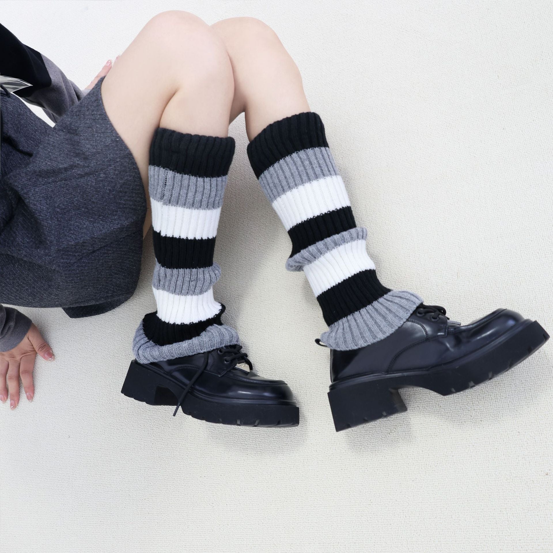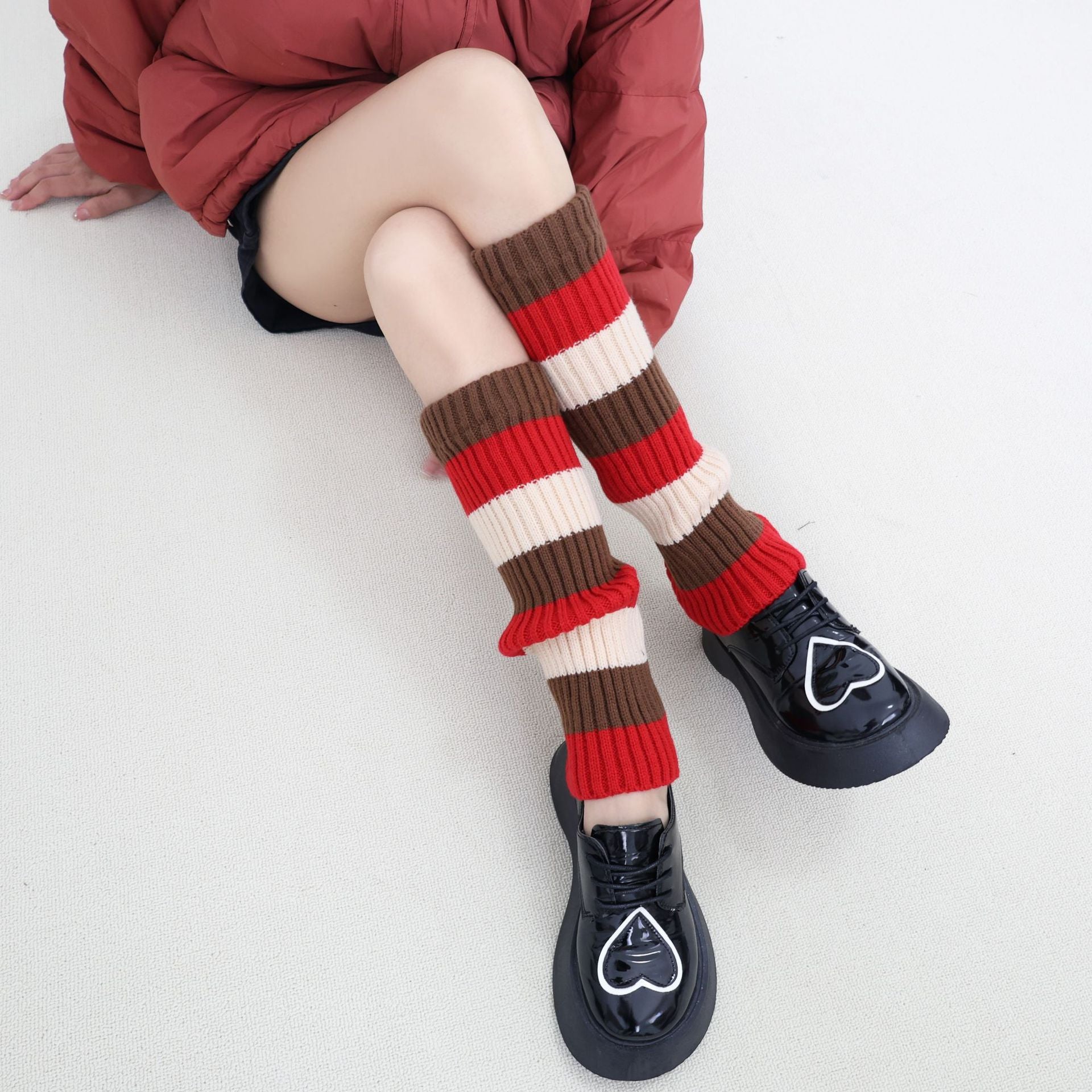 Knit Striped Color Block Slouchy Red Leg Warmers