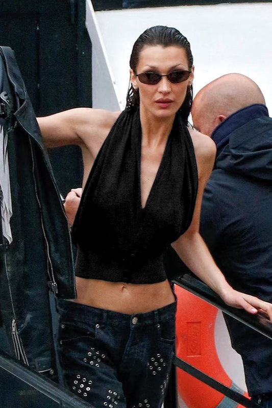 Loose V Neck Halter Solid Waist Button Backless Tank Top