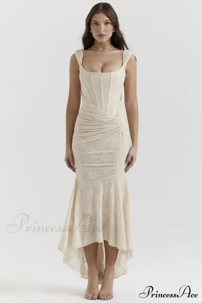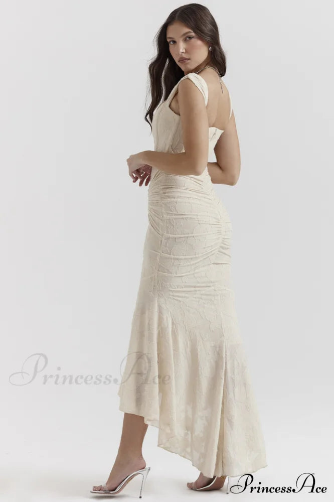 Robe longue à fleurs blanche et charmante de couleur crème rétro Cesca