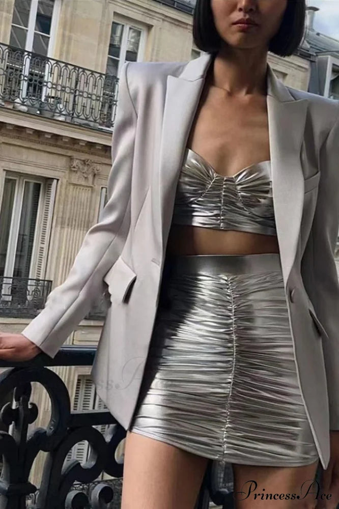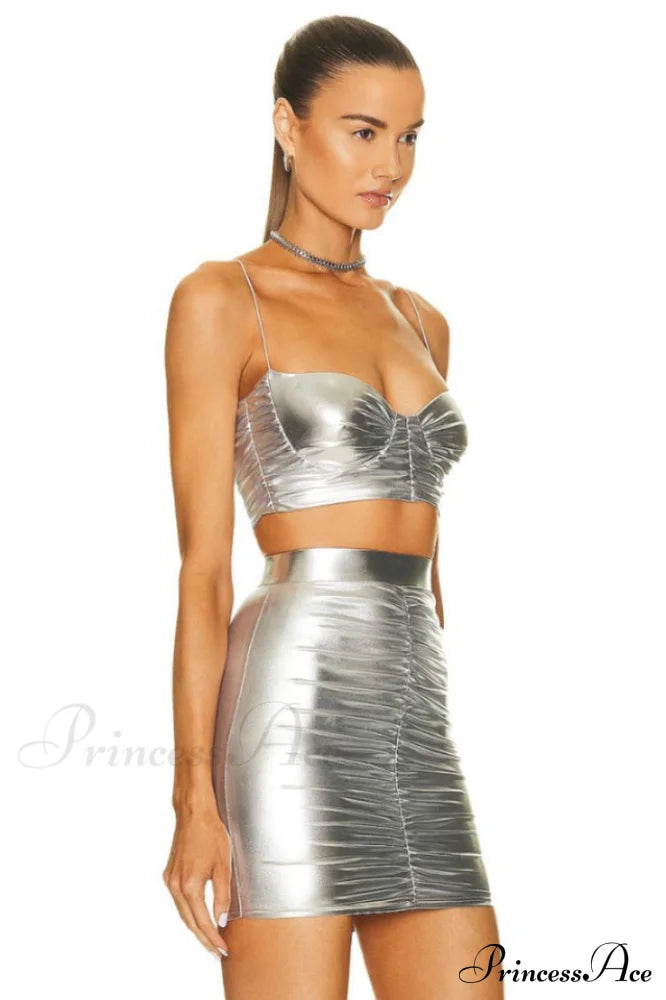 Tissu métallique avec détails froncés