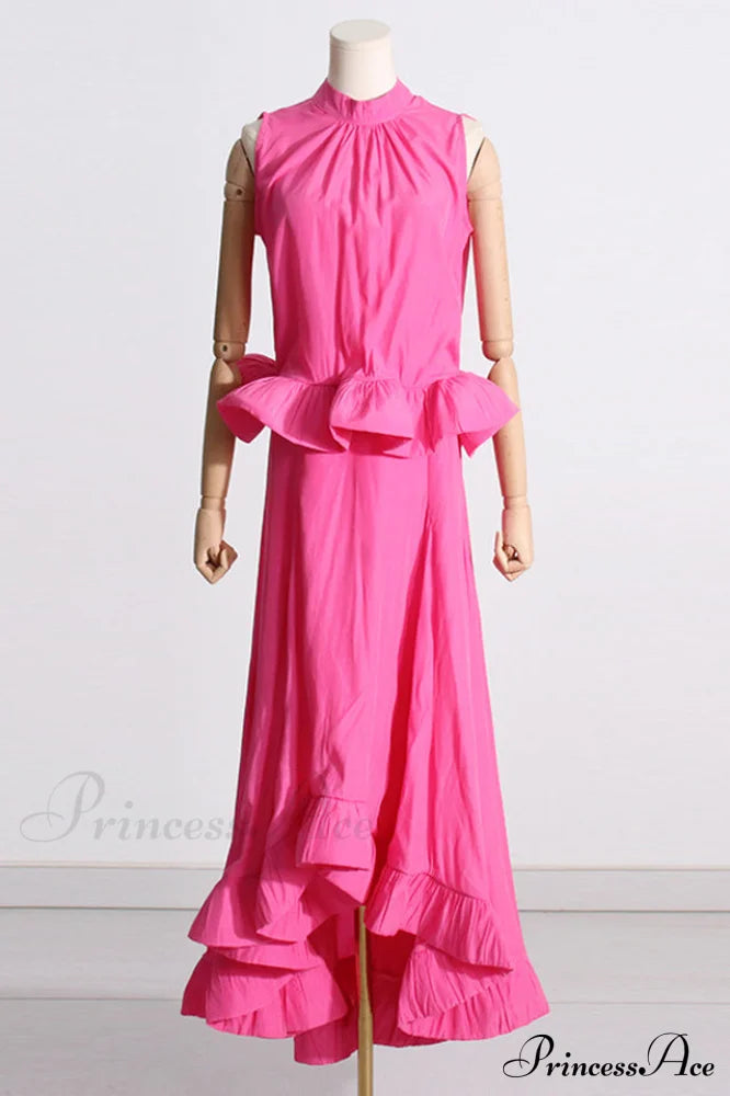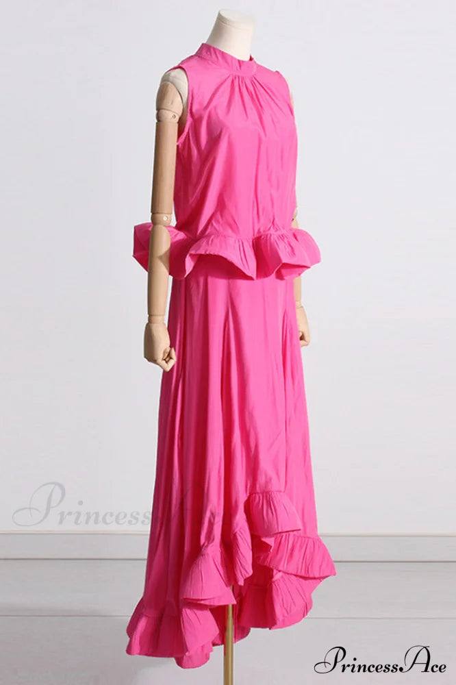 Ensemble sirène à volants sans manches rose Elaine