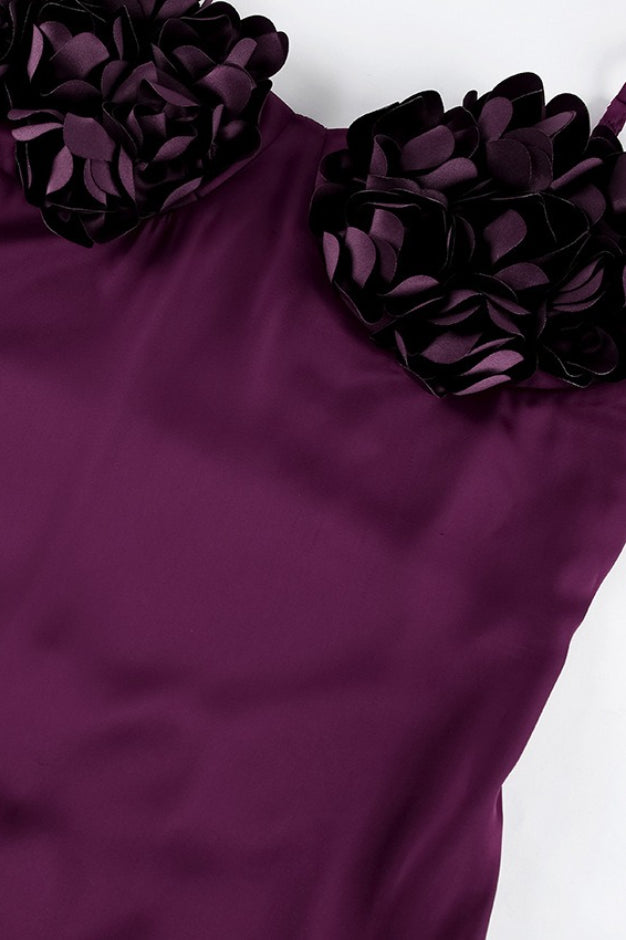 Rose Floral Elegant Backless Satin Cami Maxi Dress