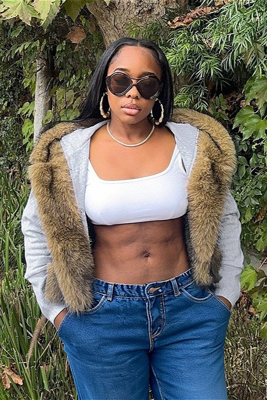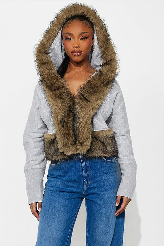 Short Loose Thick Pieced Fur Trim Hoodie