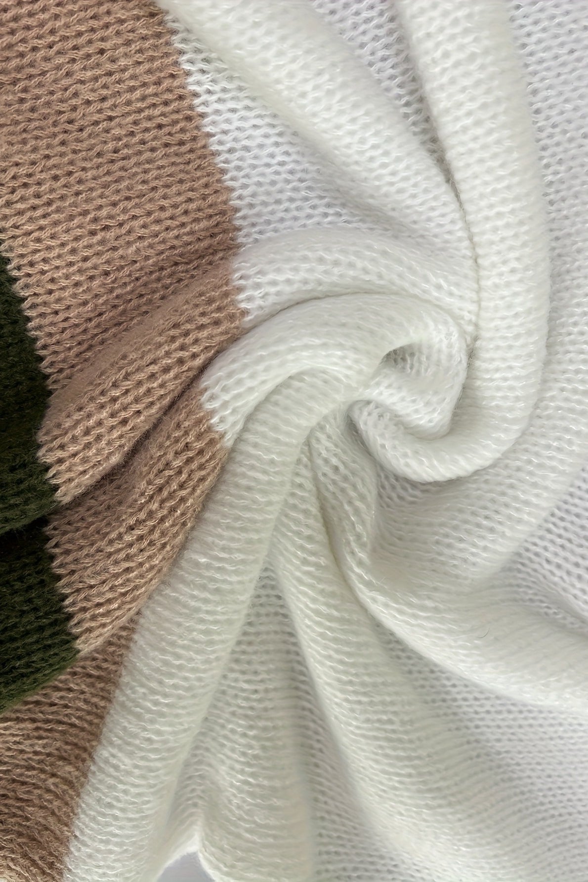 Soft Colorblock Crew Neck Puffy Knit Elegant Sweater