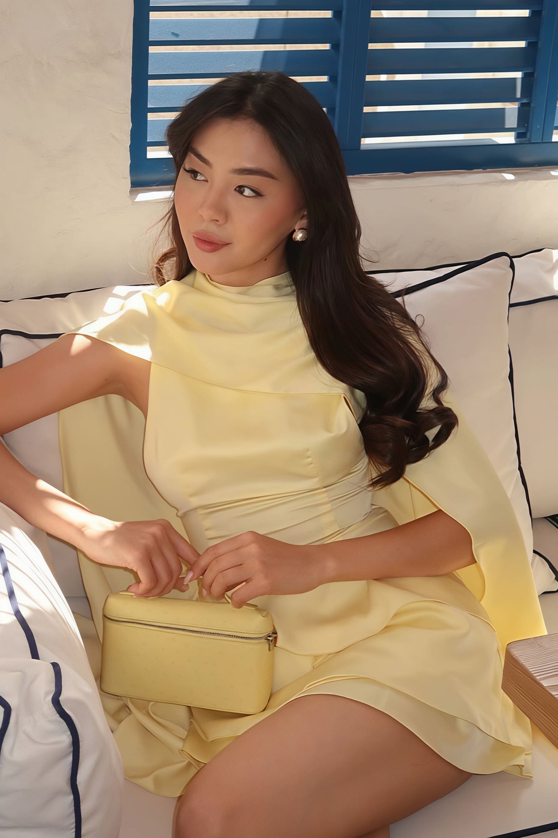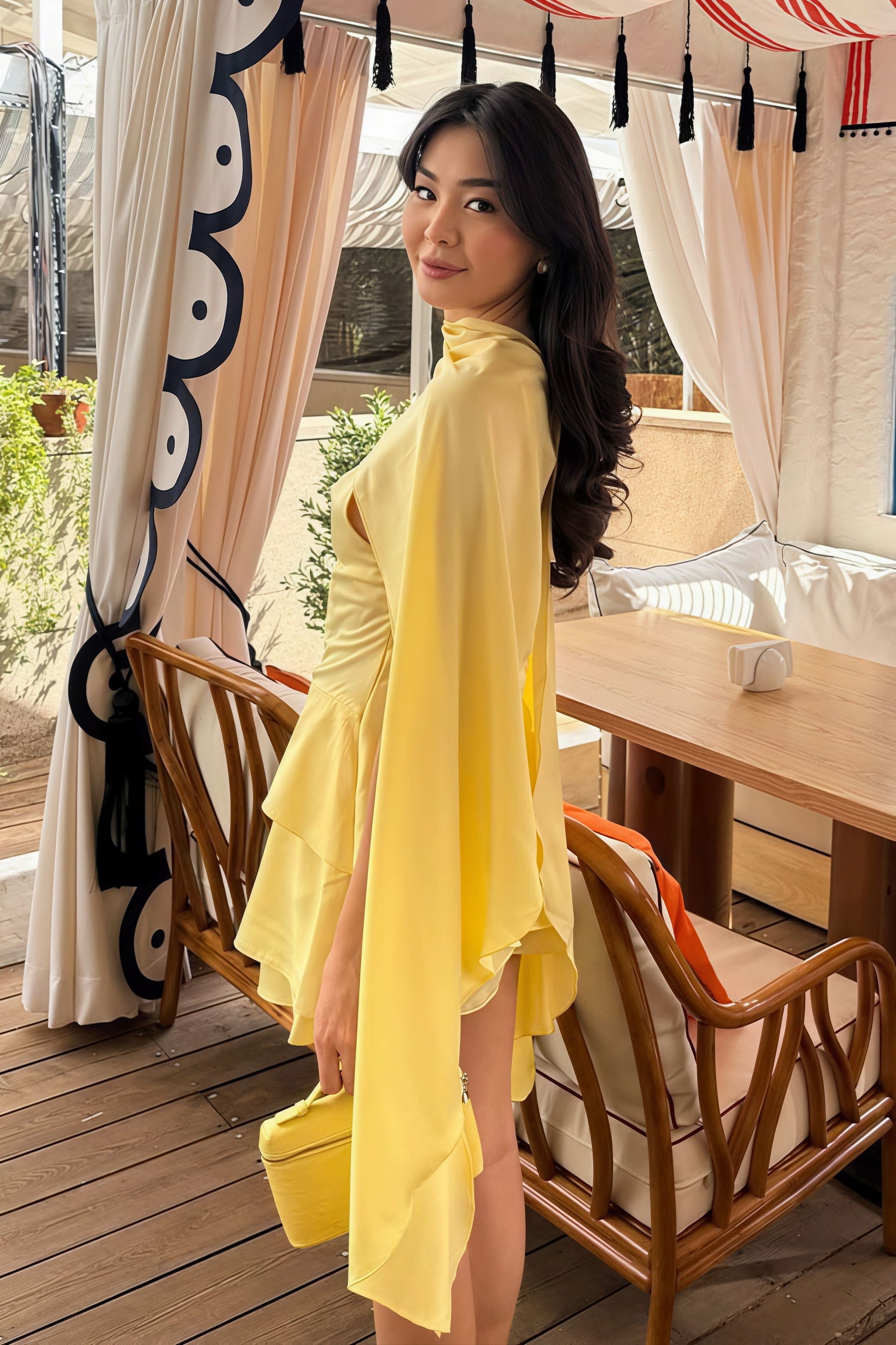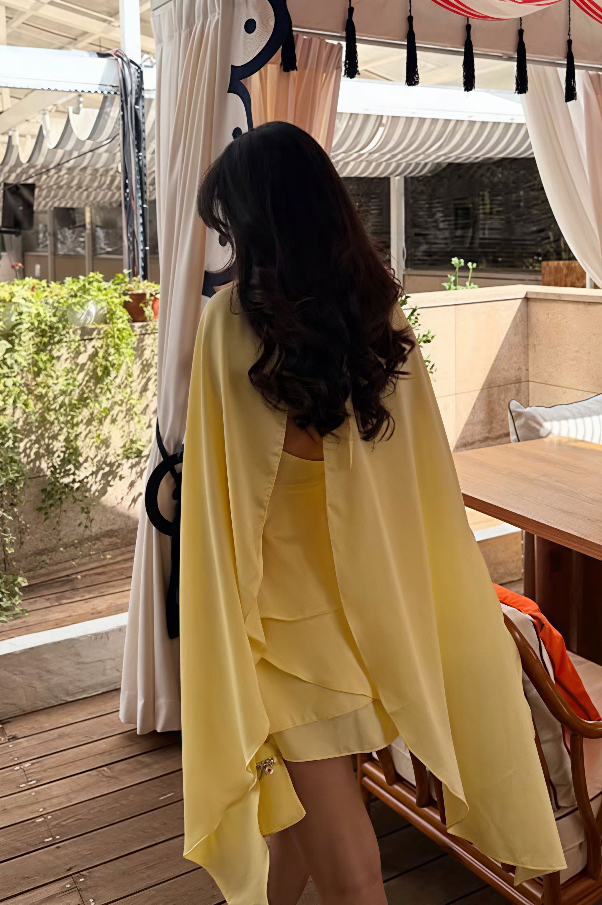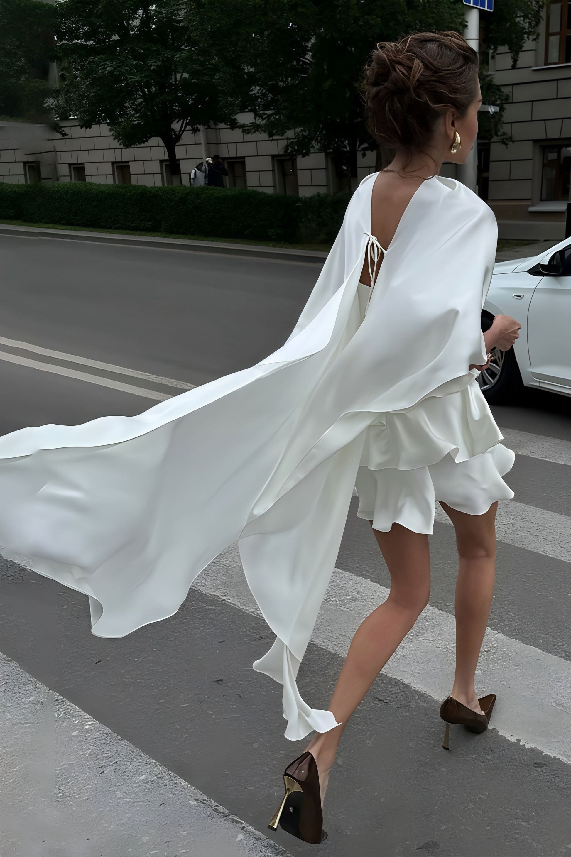 Solid Satin Shawl Cami Ruffle Mini Dress