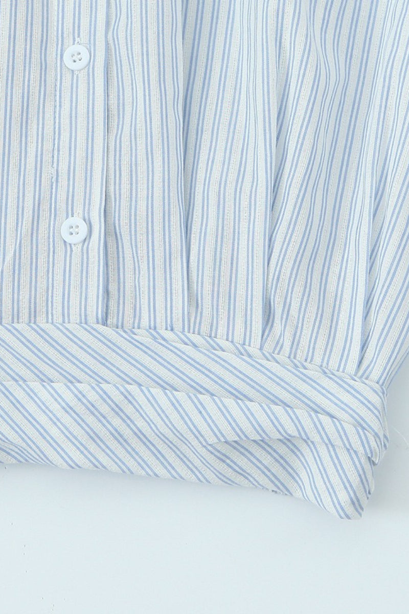 Striped Long Sleeve Shirt High Waist Tie Mini Skirt Set