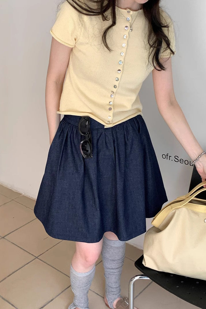 Vintage Blue High Waist A Line Denim Mini Skirt