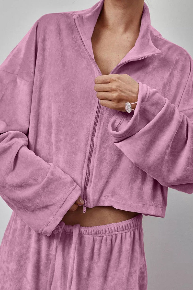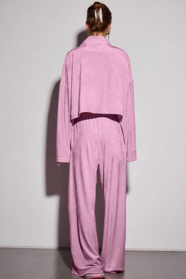 Ensemble deux pièces vintage avec haut court à cordon de serrage et pantalon large