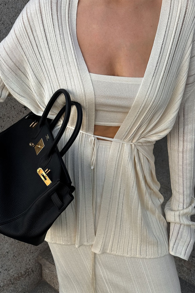 Ensemble trois pièces vintage en tricot côtelé avec cardigan et robe camisole
