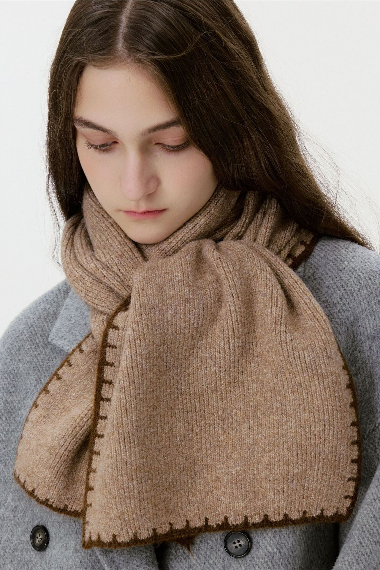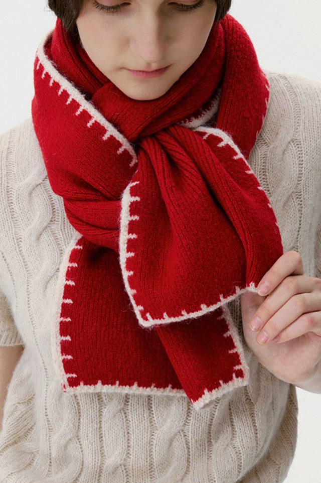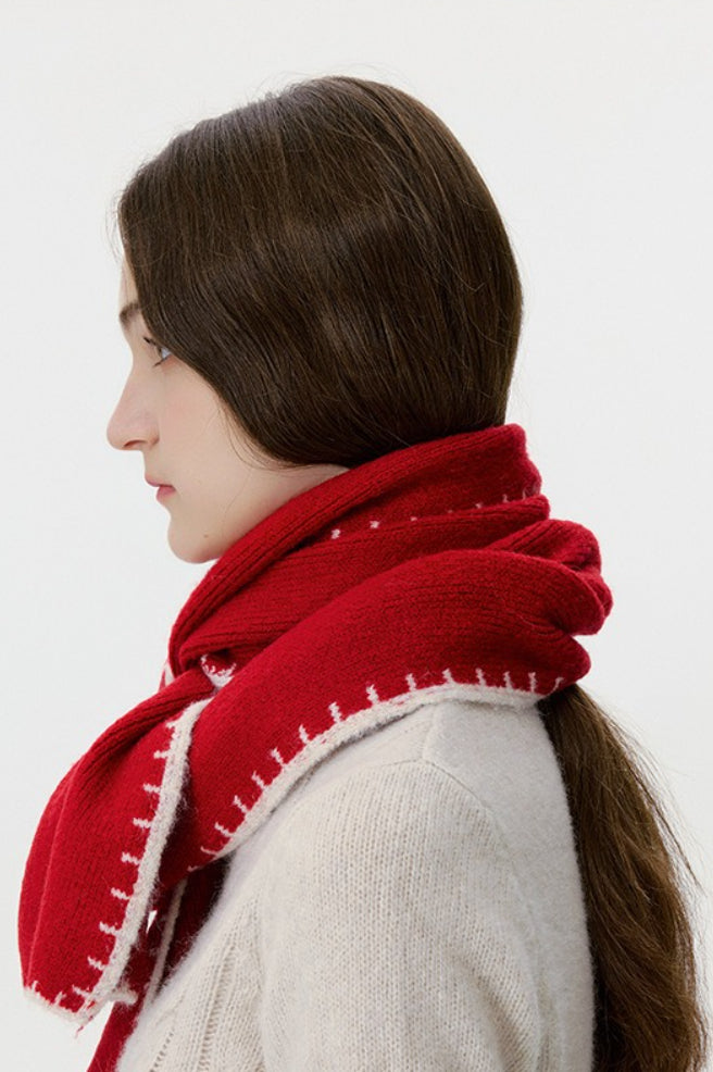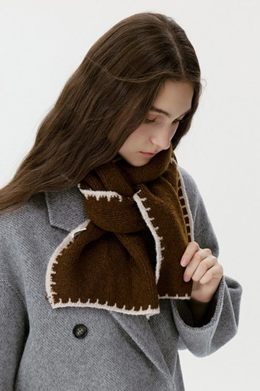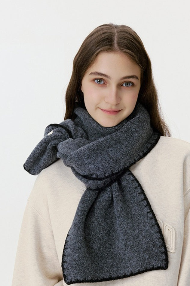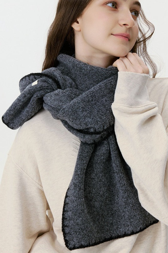 Warm Minimalist Knitted Stitched Hem Scarf