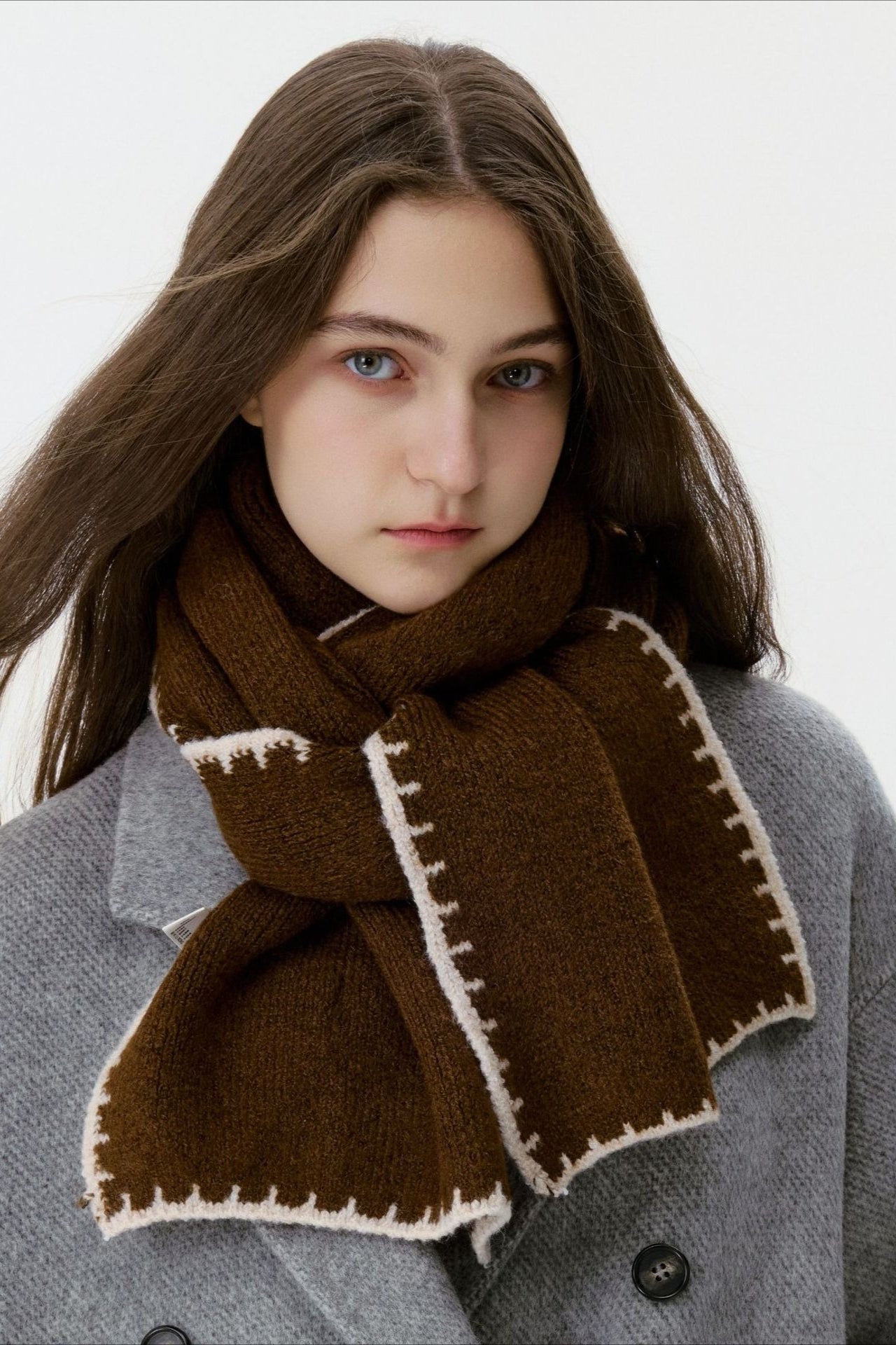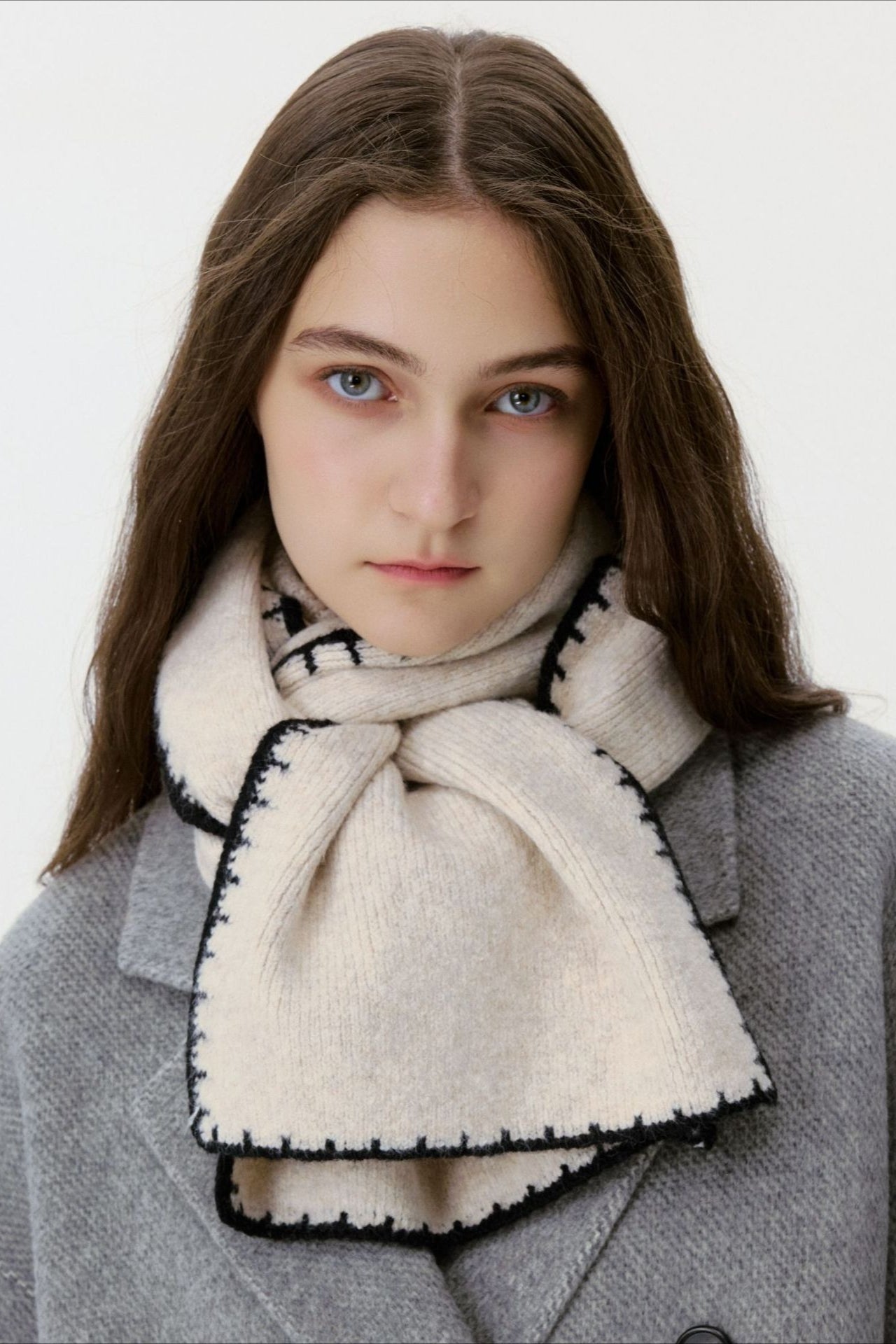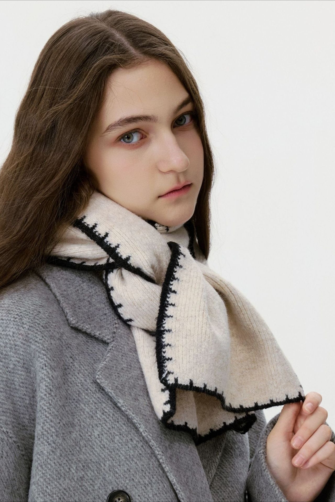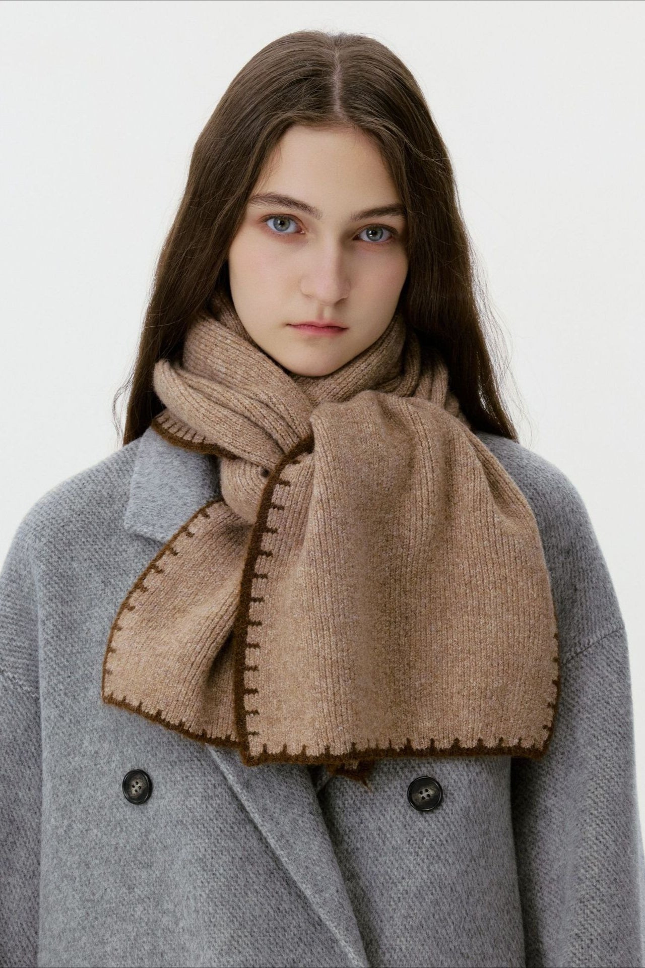 Warm Minimalist Knitted Stitched Hem Scarf