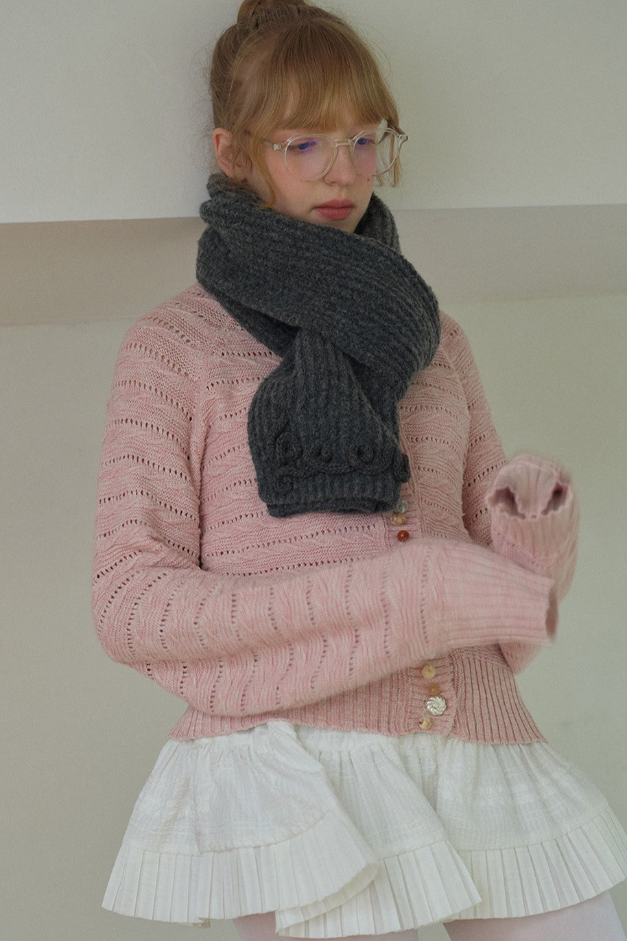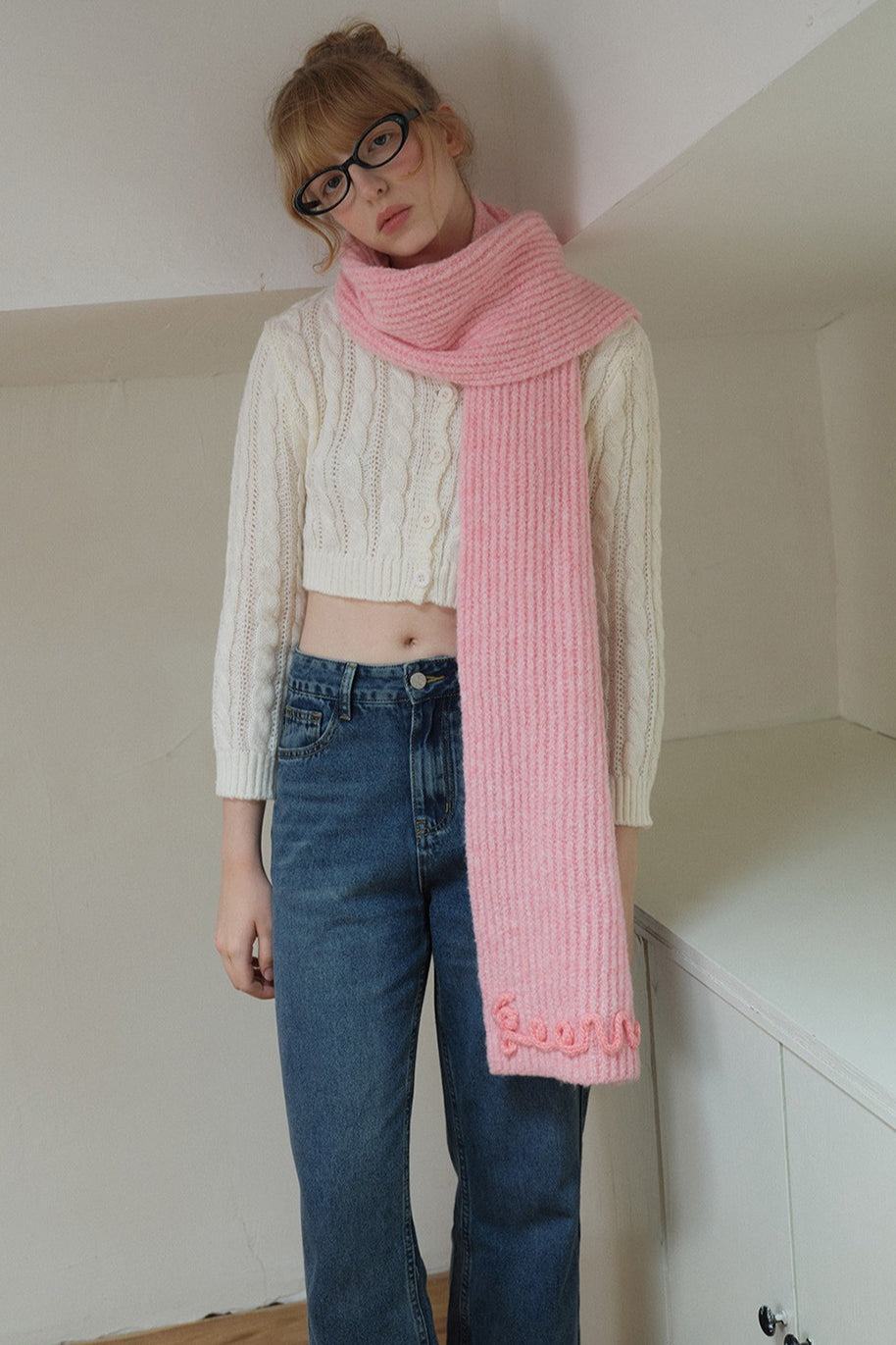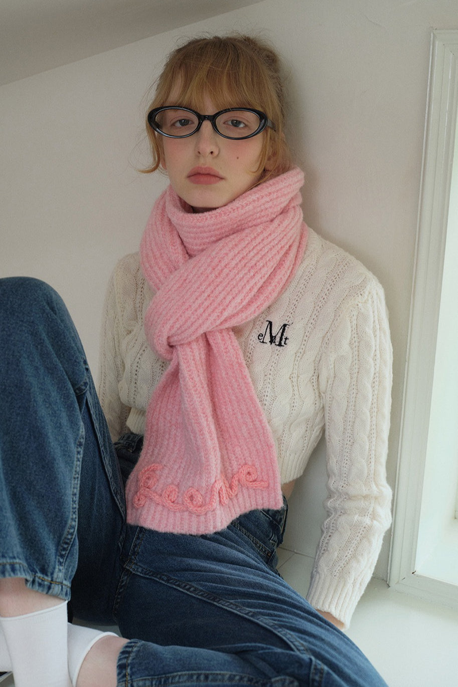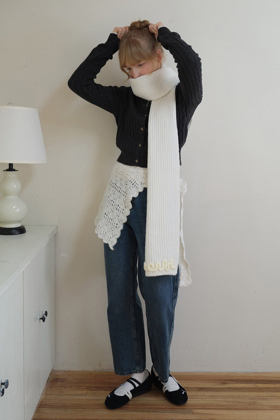 Wool Blend 3D Hand-Crocheted Letter Solid Scarf